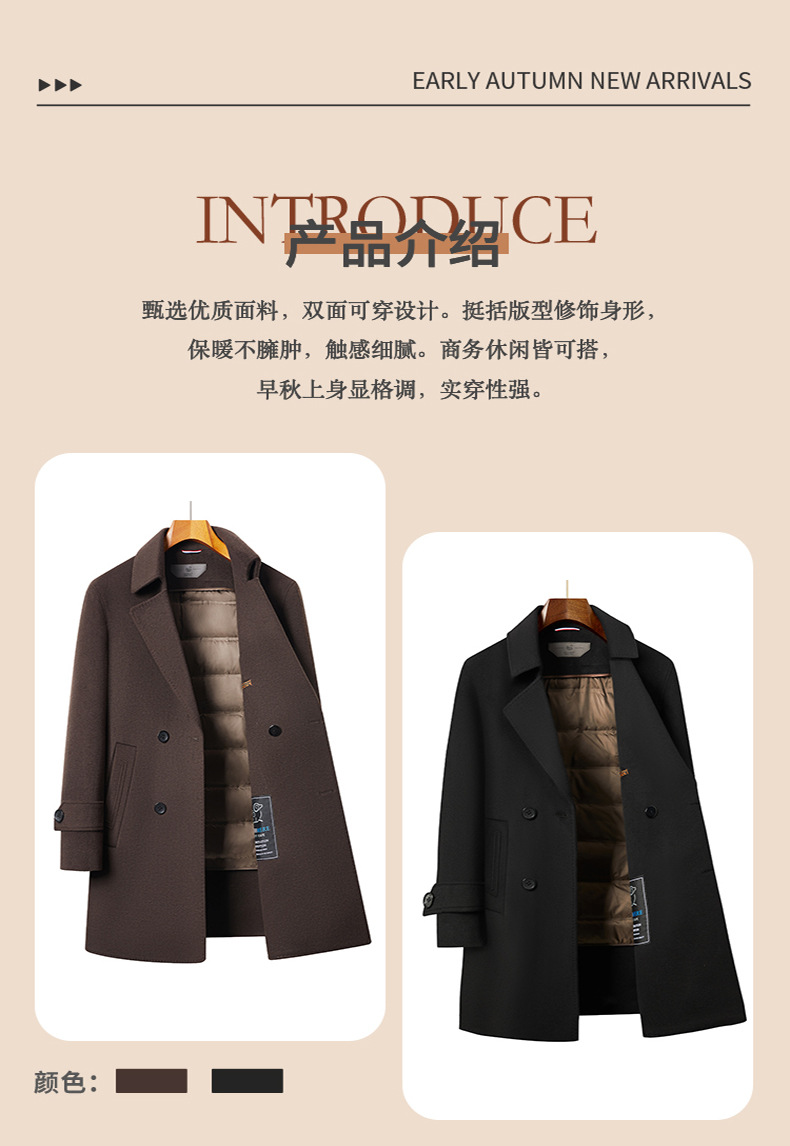 Áo khoác nam dáng dài có hai mặt đều làm từ len ấm áp, kết hợp cùng áo lông vũ bên trong có thể tháo rời linh hoạt. Thiết kế hai hàng khuy cổ điển, kiểu dáng áo choàng thanh lịch phù hợp cho mùa thu đông. Chỉ cần khoác ngoài là đã có ngay diện mật chỉn chu, giữ ấm tốt nhờ lớp lông vũ bên trong. Dễ dàng phối cùng nhiều trang phục khác nhau. | Tên sản phẩm: Áo Gió Nam Hàng Mùa Xuân Thu Đông - Thời Trang Nam | Mã sản phẩm: A8417 - Giá: 3.420.000đ | Mã nhà sản xuất: SUDIN-G06Hình ảnh sản phẩm