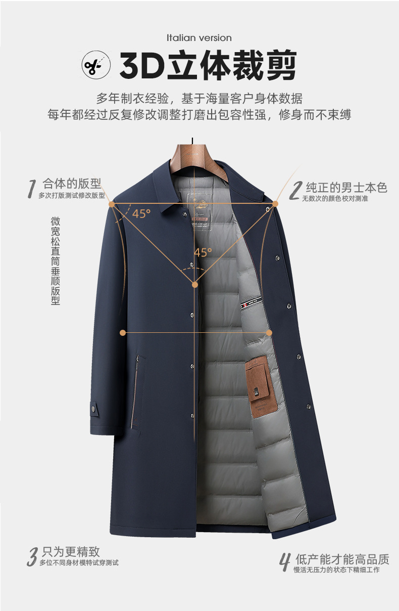 Áo khoác dáng dài dành cho nam, thiết kế phù hợp cho thời tiết lạnh. Sản phẩm sử dụng lớp lông vũ mềm mại bên trong, giữ ấm tốt. Kiểu dáng kết hợp giữa đi làm và đi chơi, lịch sự mà vẫn thoải mái. Có thể mặc trực tiếp bên ngoài áo thun hoặc áo len. Phù hợp cho nhiều dịp sinh hoạt hằng ngày, đặc biệt tiện dụng cho các bậc cha, chú. | Tên sản phẩm: Áo Khoác Nam Hàng Mùa Xuân Thu Đông Trung Niên - Thời Trang Nam | Mã sản phẩm: A8426 - Giá: 2.120.000đ | Mã nhà sản xuất: SUDIN-G05Hình ảnh sản phẩm