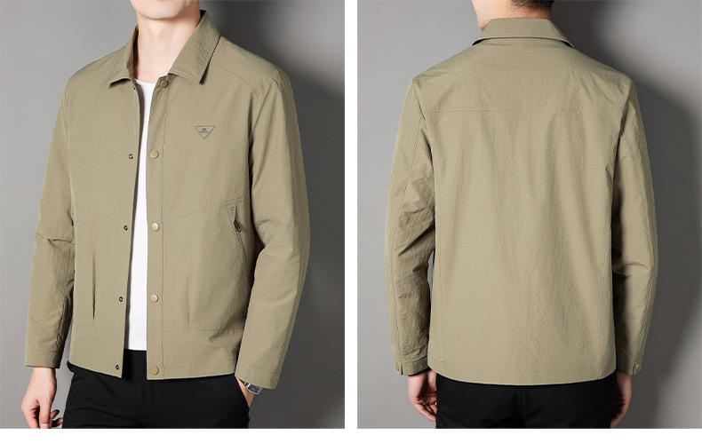 Áo khoác nam thiết kế cổ bẻ, dáng ôm gọn gàng, phù hợp tiết trời xuân thu. Chất vải nhẹ, mềm mại mang đến sự thoải mái khi mặc. Kiểu dáng lao động trẻ trung, dễ dàng phối cùng nhiều trang phục như quần tây, quần jean hay áo thun. Sản phẩm có túi tiện dụng phía trước, giúp bảo quản vật dụng cá nhân. Có thể mặc làm áo ngoài trong ngày se lạnh hoặc kết hợp làm đồng phục lao động nhẹ nhàng. | Tên sản phẩm: Áo Khoác Nam Dáng Ôm Kín Cổ Hàng Mùa Xuân Thu Đông Phong Cách Trẻ Trung - Thời Trang Nam | Mã sản phẩm: A8440 - Giá: 1.440.000đ | Mã nhà sản xuất: SUDIN-G04Hình ảnh sản phẩm