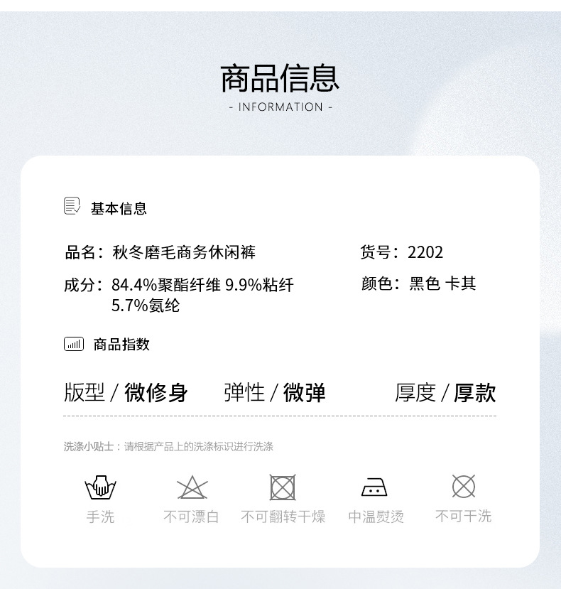 Chiếc quần dài này được thiết kế cho mùa thu đông, với chất vải dày dặn có phủ một lớp lông mỏng nhẹ giữ ấm tốt. Kiểu dáng thẳng ôn hòa, có độ co giãn nhẹ giúp người mặc thoải mái vận động. Đây là mẫu quần l dáng lịch sự, phù hợp cho nhiều hoàn cảnh sử dụng. Đặc biệt, quần ít nhăn nên rất tiện lợi, không cần phải ủi kỹ trước khi dùng. | Tên sản phẩm: Quần Nam Dáng Ôm Hàng Mùa Xuân Thu Đông - Thời Trang Nam | Mã sản phẩm: A8480 - Giá: 990.000đ | Mã nhà sản xuất: SUDIN-G03Hình ảnh sản phẩm