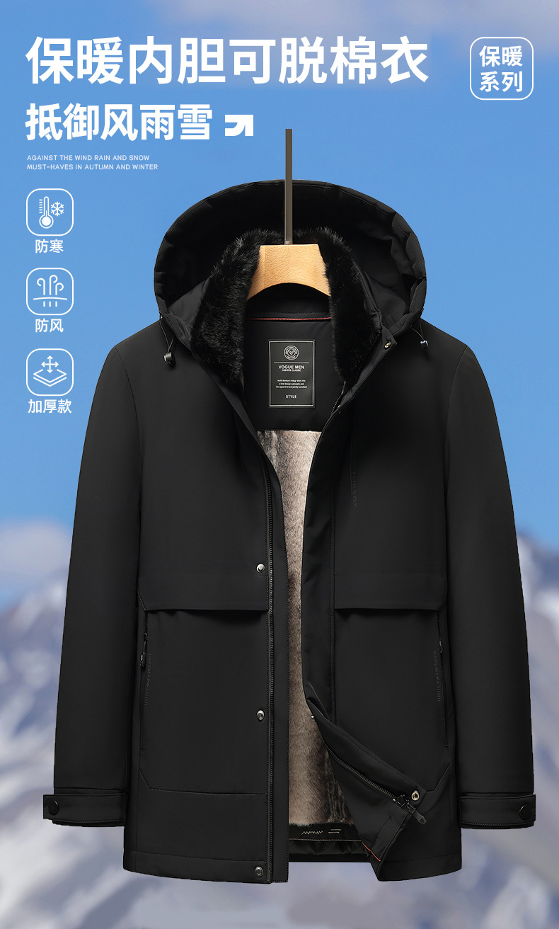 Áo khoác nam có mũ, thiết kế dạng áo liền thân với lớp lót bông mềm mại và được lót thêm một lớp lông tơ bên trong giúp giữ ấm tốt cho mùa thu đông. Chất liệu tổng hợp nhẹ, tạo cảm giác thoải mái khi mặc. Lớp lót bên trong có thể tháo rời một cách dễ dàng, giúp bạn điều chỉnh độ ấm phù hợp với thời tiết. Sản phẩm phù hợp cho các hoạt động hằng ngày, mặc đi làm hoặc khi giải trí. | Tên sản phẩm: Áo Khoác Dày Nam Chất Liệu Vải Bông Áo Khoác Bông Mũ Liền Dày Ấm Hàng Mùa Xuân Thu Đông Trung Niên - Thời Trang Nam | Mã sản phẩm: A8544 - Giá: 1.920.000đ | Mã nhà sản xuất: SUDIN-G05Hình ảnh sản phẩm