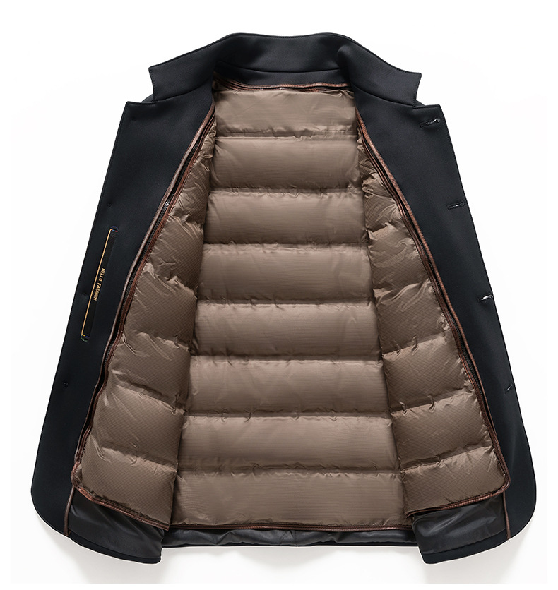 Áo khoác nam có phần ruột lông vũ dễ dàng tháo rời, rất tiện lợi cho những ngày tiết trời thay đổi. Chất liệu vỏ ngoài mềm mại như lụa, giúp giữ ấm tốt và mang lại cảm giác dễ chịu. Phần ruột được lấp đầy bằng lông vũ tơ ngỗng trắng, tạo độ phồng nhẹ và cách nhiệt hiệu quả. Kiểu dáng thiết kế phù hợp cho mùa thu đông, mang đến sự ấm áp vừa phải. Có thể mặc riêng phần ruột bên trong hoặc kết hợp với áo ngoài tùy theo nhu cầu sử dụng. | Tên sản phẩm: Áo Khoác Nam Dày Ấm Hàng Mùa Xuân Thu Đông - Thời Trang Nam | Mã sản phẩm: A8551 - Giá: 1.900.000đ | Mã nhà sản xuất: SUDIN-G05Hình ảnh sản phẩm