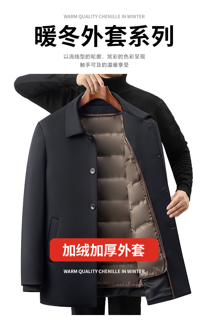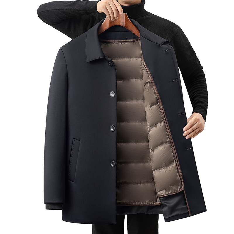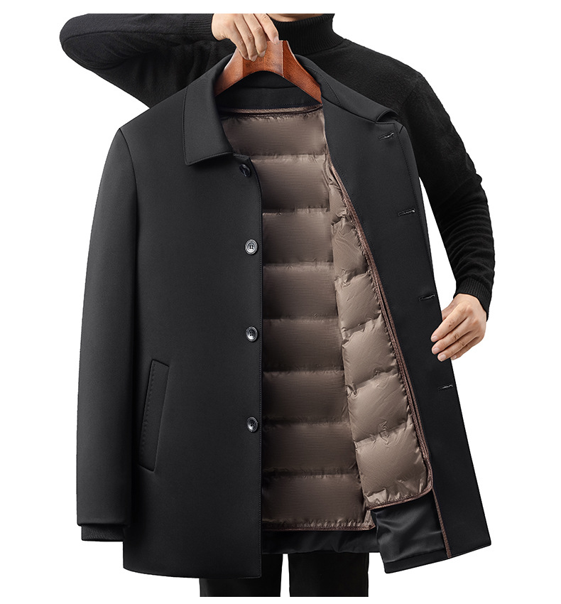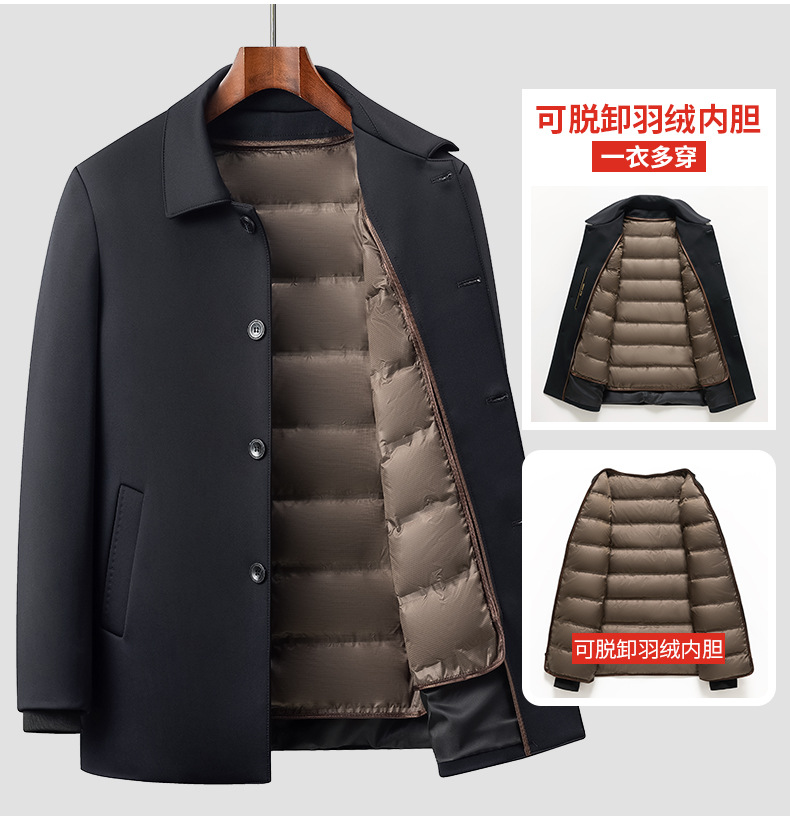 Áo khoác mùa lạnh dành cho nam trung niên, có lớp áo lót bông lông vũ dày dặn bên trong có thể tháo rời. Áo sử dụng chất liệu bông lông vũ tự nhiên, kiểu dáng lịch sự với cổ bẻ. Sản phẩm giữ ấm tốt, phù hợp mặc trong tiết trời se lạnh. Có thể mặc nguyên bộ hoặc tách riêng áo lót và áo ngoài tùy theo nhu cầu sử dụng. | Tên sản phẩm: Áo Khoác Nam Kín Cổ Hàng Mùa Xuân Thu Đông - Thời Trang Nam | Mã sản phẩm: A8552 - Giá: 1.900.000đ | Mã nhà sản xuất: SUDIN-G05Hình ảnh sản phẩm