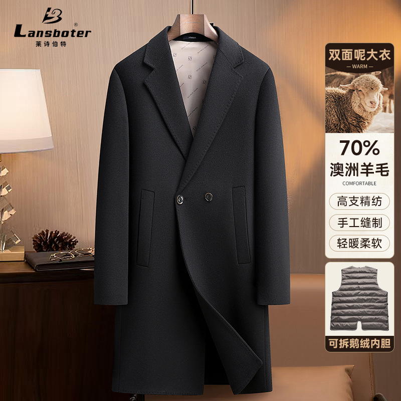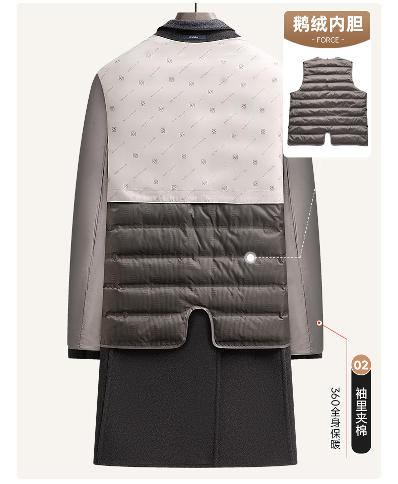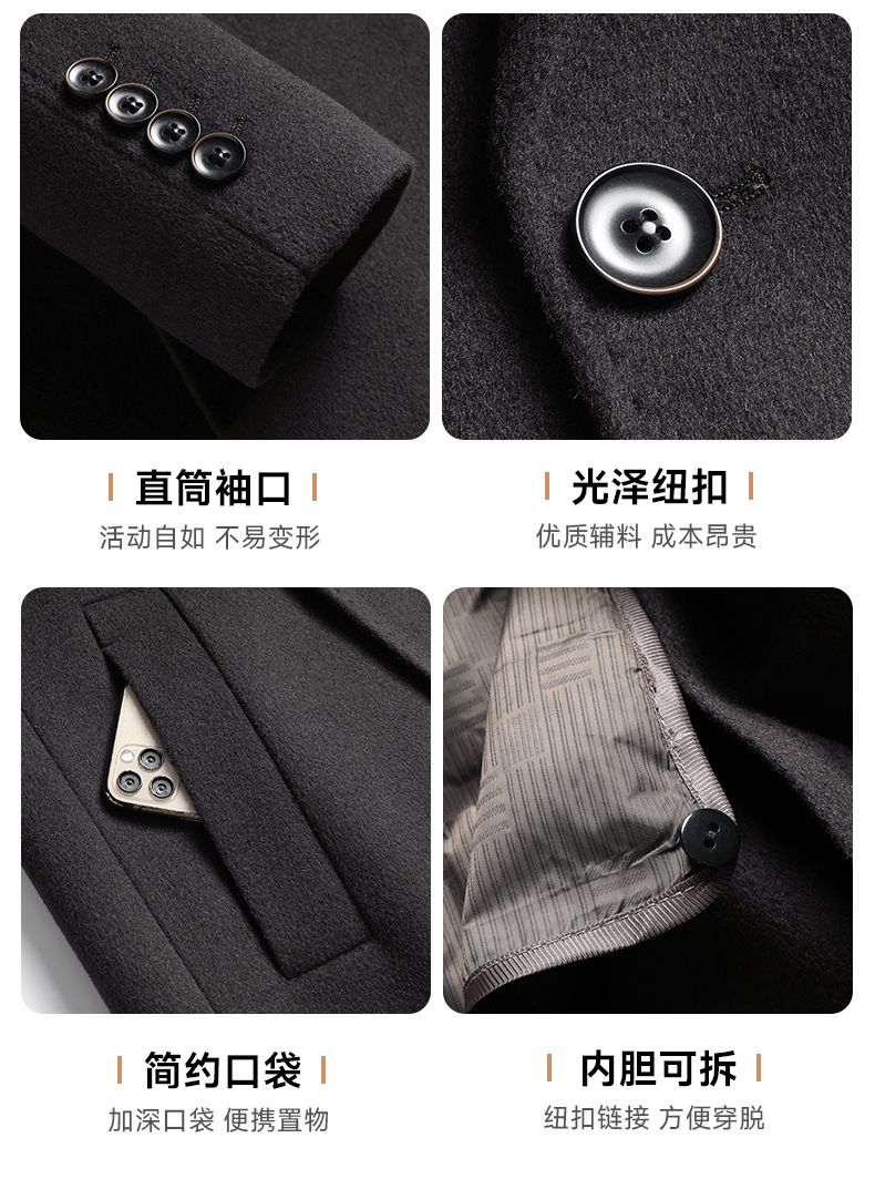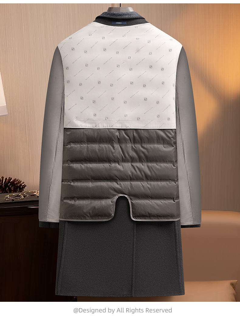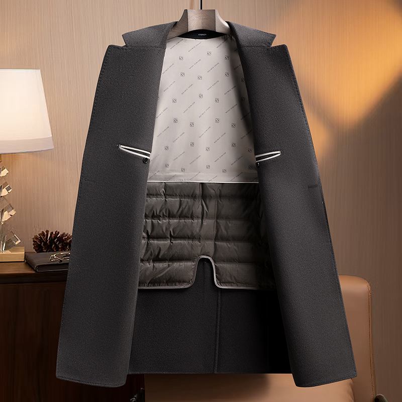Áo khoác nam dáng dài cho mùa thu đông, có hai mặt đều mặc được rất tiện lợi. Bên trong là lớp áo lông vũ tách rời, giữ ấm tốt khi trời lạnh. Chất liệu chính từ sợi len tự nhiên, mềm mại và ấm áp. Kiểu dáng cổ điển với hàng khuy kép, chỉ cần một khuy cài duy nhất. Có thể mặc như áo choàng ngoài hoặc kết hợp lớp lông bên trong tùy theo thời tiết. Phù hợp cho nhiều dịp sử dụng hàng ngày. | Tên sản phẩm: Áo Khoác Nam Hàng Mùa Xuân Thu Đông - Thời Trang Nam | Mã sản phẩm: A8569 - Giá: 3.680.000đ | Mã nhà sản xuất: SUDIN-G06Hình ảnh sản phẩm