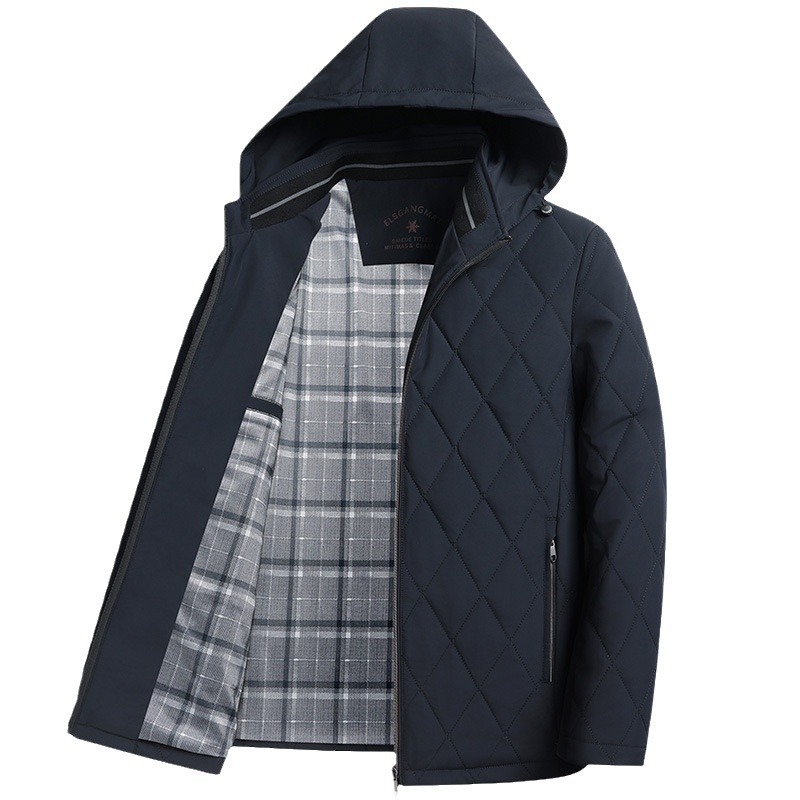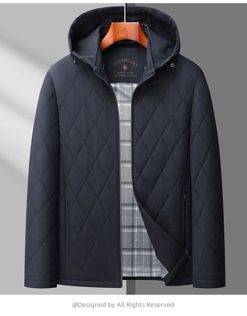 Áo khoác mỏng nhẹ có mũ trùm, dáng ngắn gọn gàng, phù hợp cho các bố trung niên mặc trong tiết trời se lạnh. Sản phẩm được làm từ chất liệu tơ tằm tự nhiên kết hợp bông ấm áp, mang lại cảm giác dễ chịu, thoải mái khi mặc. Kiểu dáng trẻ trung, năng động, dễ dàng phối cùng nhiều loại trang phục. Có thể mặc làm áo khoác ngoài những ngày thu đông hay dùng khi vui chơi, dạo phố. | Tên sản phẩm: Áo Khoác Dày Nam Chất Liệu Lụa Tơ Tằm Mũ Liền Hàng Mùa Xuân Thu Đông Trung Niên - Thời Trang Nam | Mã sản phẩm: A8647 - Giá: 1.640.000đ | Mã nhà sản xuất: SUDIN-G05Hình ảnh sản phẩm
