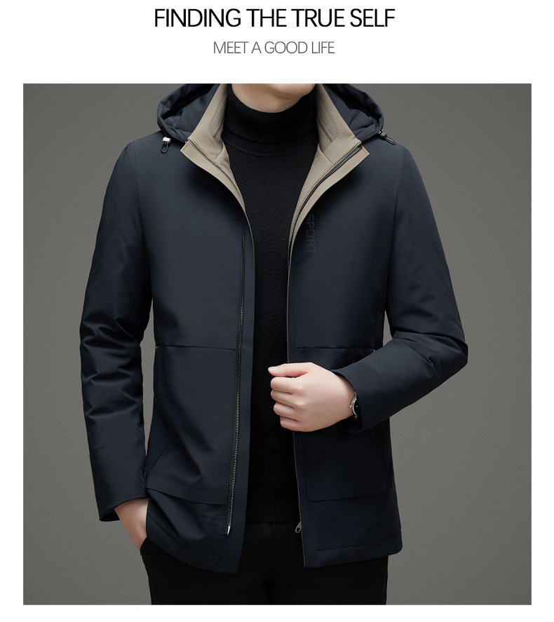 Áo khoác dành cho nam có mũ trùm có thể tháo rời. Chất vải mềm mại như lụa, được lót bằng lớp lông vũ tự nhiên của loài chim nước, mang lại khả năng giữ ấm tốt mà vẫn nhẹ nhàng, thoải mái. Kiểu dáng phù hợp cho công sở hoặc dùng hằng ngày trong thời tiết se lạnh. Dễ dàng mặc trực tiếp bên ngoài các trang phục thông thường. Mũ có thể điều chỉnh hoặc tháo ra khi không cần dùng đến. | Tên sản phẩm: Áo Khoác Nam Hàng Mùa Xuân Thu Đông - Thời Trang Nam | Mã sản phẩm: A8662 - Giá: 2.500.000đ | Mã nhà sản xuất: SUDIN-G05Hình ảnh sản phẩm
