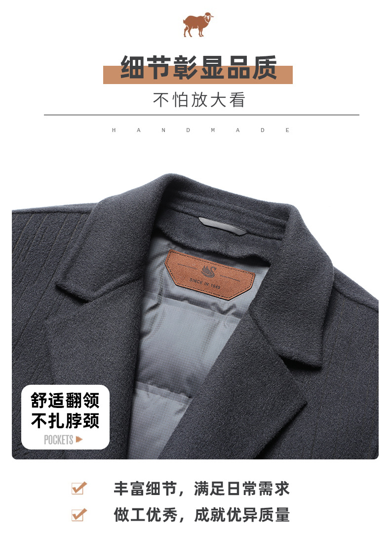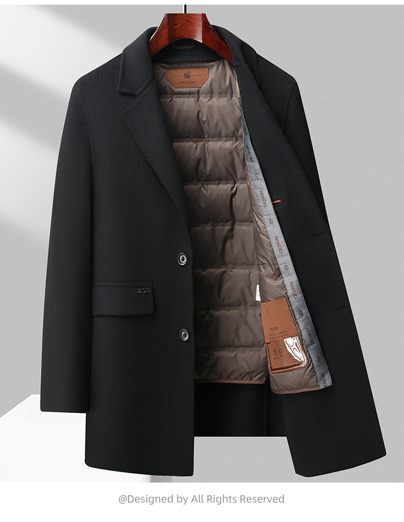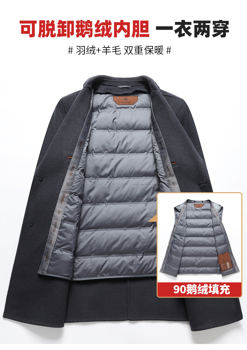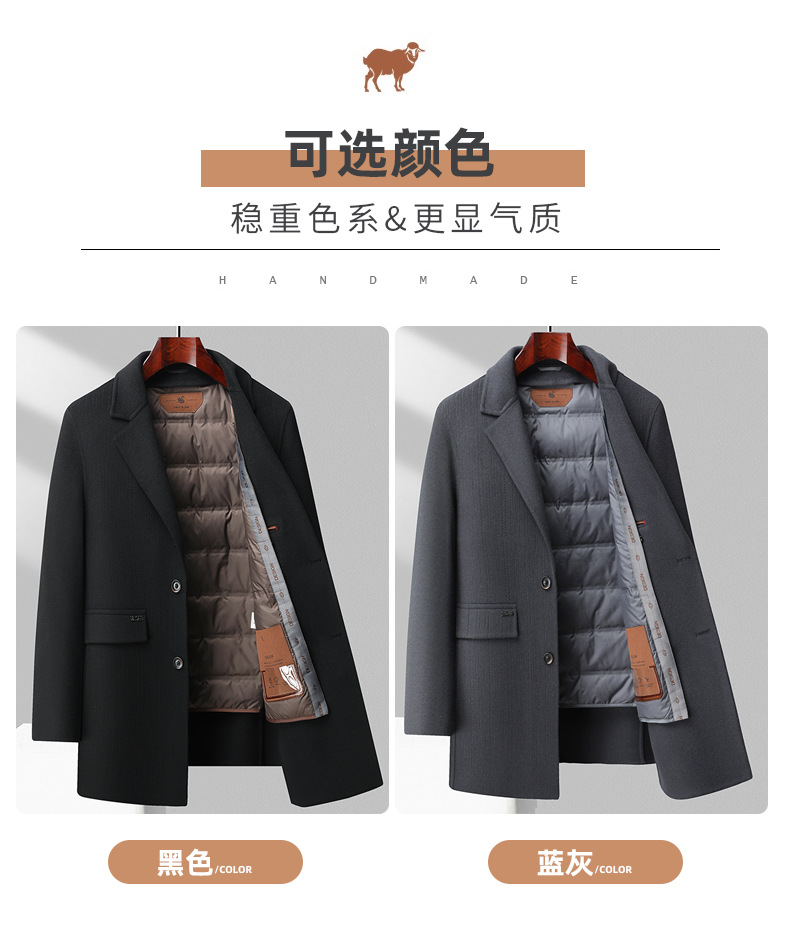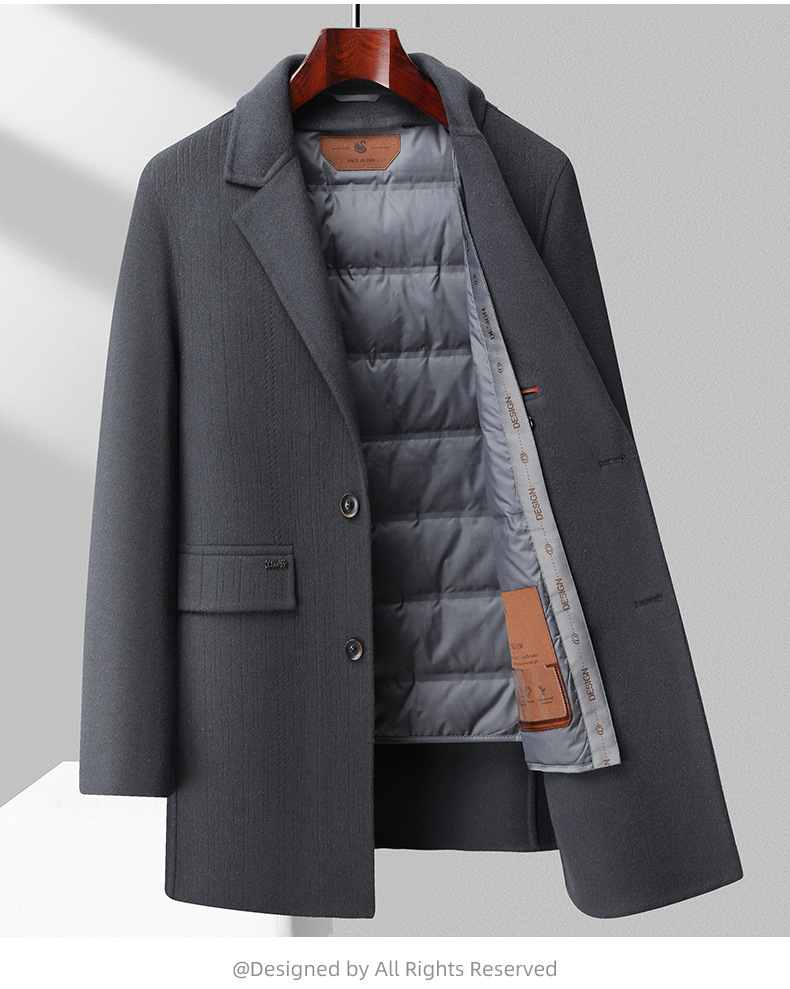 Áo khoác nam dày dặn, hoàn toàn từ chất liệu len tự nhiên, phù hợp cho thời tiết lạnh. Sản phẩm có hai mặt đều mịn đẹp, được làm thủ công với họa tiết chìm tinh tế. Điểm nổi bật là lớp áo bên trong có thể tháo rời, được lót bằng lông vũ mềm mại, giữ ấm rất tốt. Bạn có thể mặc kết hợp như một chiếc áo khoác thông thường hoặc gắn thêm lớp lót bên trong khi trời trở lạnh hơn. | Tên sản phẩm: Áo Khoác Nam Họa Tiết Hoa Hàng Mùa Xuân Thu Đông - Thời Trang Nam | Mã sản phẩm: A8703 - Giá: 3.650.000đ | Mã nhà sản xuất: SUDIN-G06Hình ảnh sản phẩm