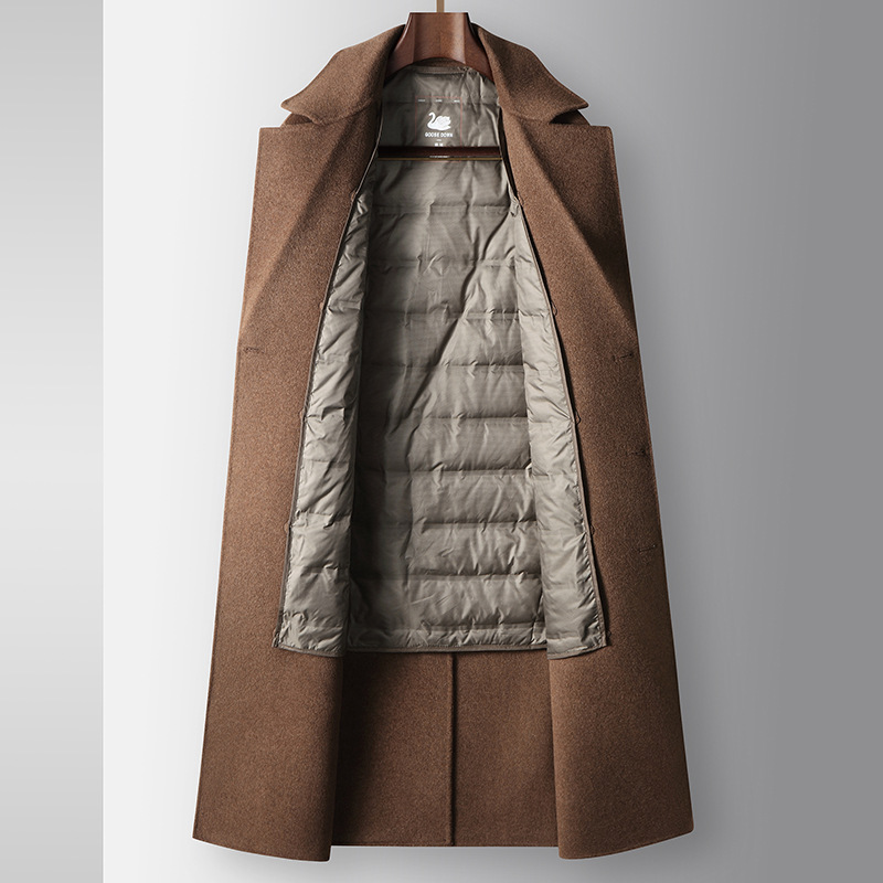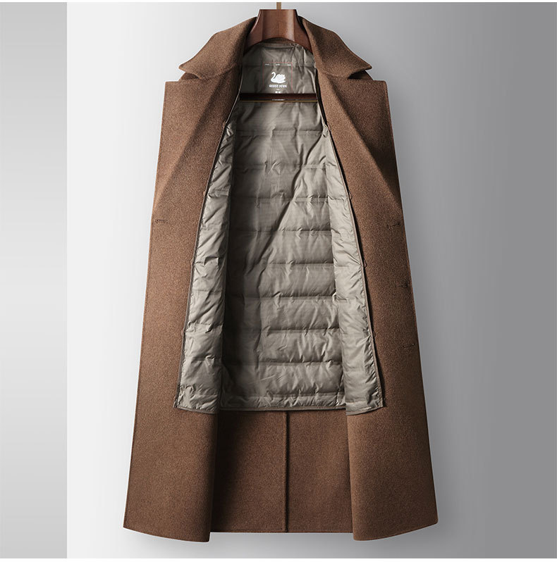 Áo khoác nam dáng dài qua gối, thích hợp mặc trong tiết trời thu đông. Sản phẩm có hai lớp vải dày dặn, bên trong là lớp lông vũ nhẹ ấm, giữ nhiệt tốt. Kiểu dáng cổ điển với hàng khuy kép, phù hợp cho những lúc đi làm hoặc dạo phố. Chỉ cần khoác ngoài cùng áo len hoặc áo thun là đủ ấm áp và thoải mái. Chất liệu chính từ sợi tự nhiên của động vật có lông xoăn, mang lại cảm giác mềm mại và giữ nhiệt hiệu quả. | Tên sản phẩm: Áo Khoác Nam Dài Quá Gối Hàng Mùa Xuân Thu Đông - Thời Trang Nam | Mã sản phẩm: A8787 - Giá: 3.650.000đ | Mã nhà sản xuất: VIDAG-G06Hình ảnh sản phẩm