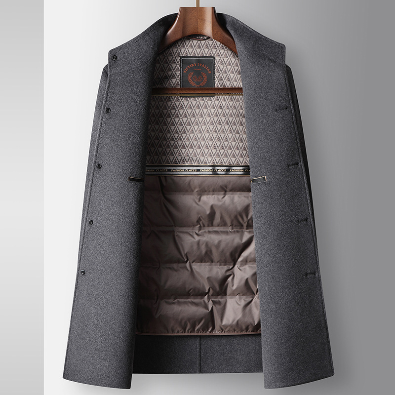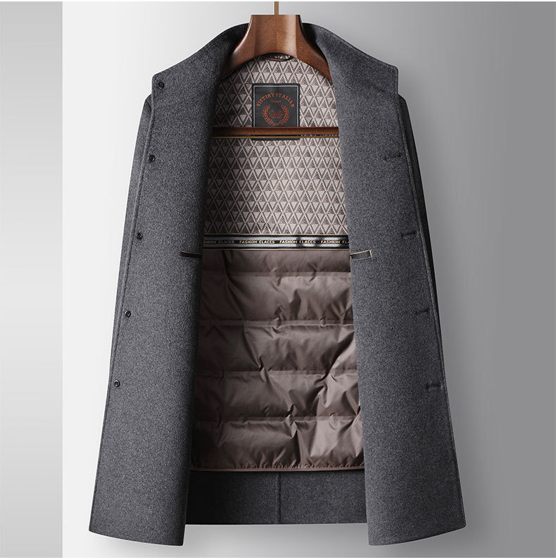 Áo khoác nam thiết kế dáng dài, phù hợp tiết trời lạnh. Chất liệu dệt kép mềm mại, giữ ấm tốt. Điểm nổi bật là cổ áo đứng và phần áo lông vũ bên trong có thể tháo rời linh hoạt. Kiểu dáng công sở lịch sự, dễ phối đồ. Mặc trực tiếp hoặc kết hợp cùng áo thun, áo len bên trong để giữ nhiệt. Phù hợp cho nhiều hoạt động trong ngày. | Tên sản phẩm: Áo Khoác Nam Hàng Mùa Xuân Thu Đông Phong Cách Trẻ Trung - Thời Trang Nam | Mã sản phẩm: A8830 - Giá: 2.450.000đ | Mã nhà sản xuất: VIDAG-G05Hình ảnh sản phẩm