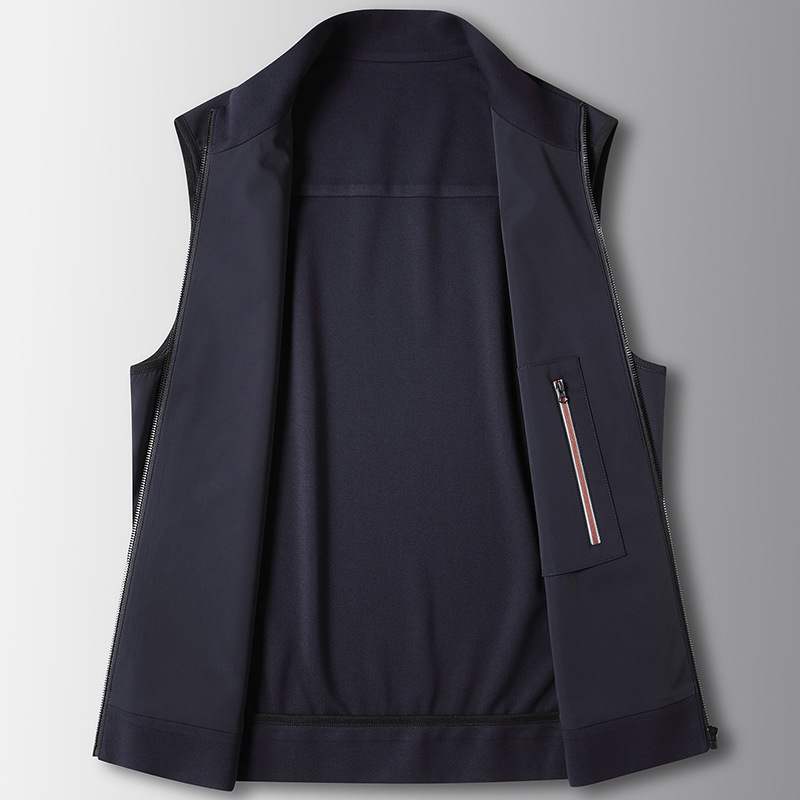 Áo khoác dạng vét không tay dành cho nam, thiết kế cổ đứng ôm sát. Sản phẩm có chất vải pha trộn mềm mại, co giãn nhẹ giúp người mặc thoải mái vận động. Kiểu dáng trơn một màu, phù hợp cho dịp làm việc hoặc những lúc thư giãn. Có thể mặc bên ngoài áo thun hoặc áo sơ mi để tạo điểm nhấn. Dễ dàng phối hợp với nhiều loại trang phục khác nhau. | Tên sản phẩm: Áo Khoác Nam Hàng Mùa Xuân Thu Đông Phong Cách Trẻ Trung - Thời Trang Nam | Mã sản phẩm: A8856 - Giá: 1.590.000đ | Mã nhà sản xuất: VIDAG-G04Hình ảnh sản phẩm
