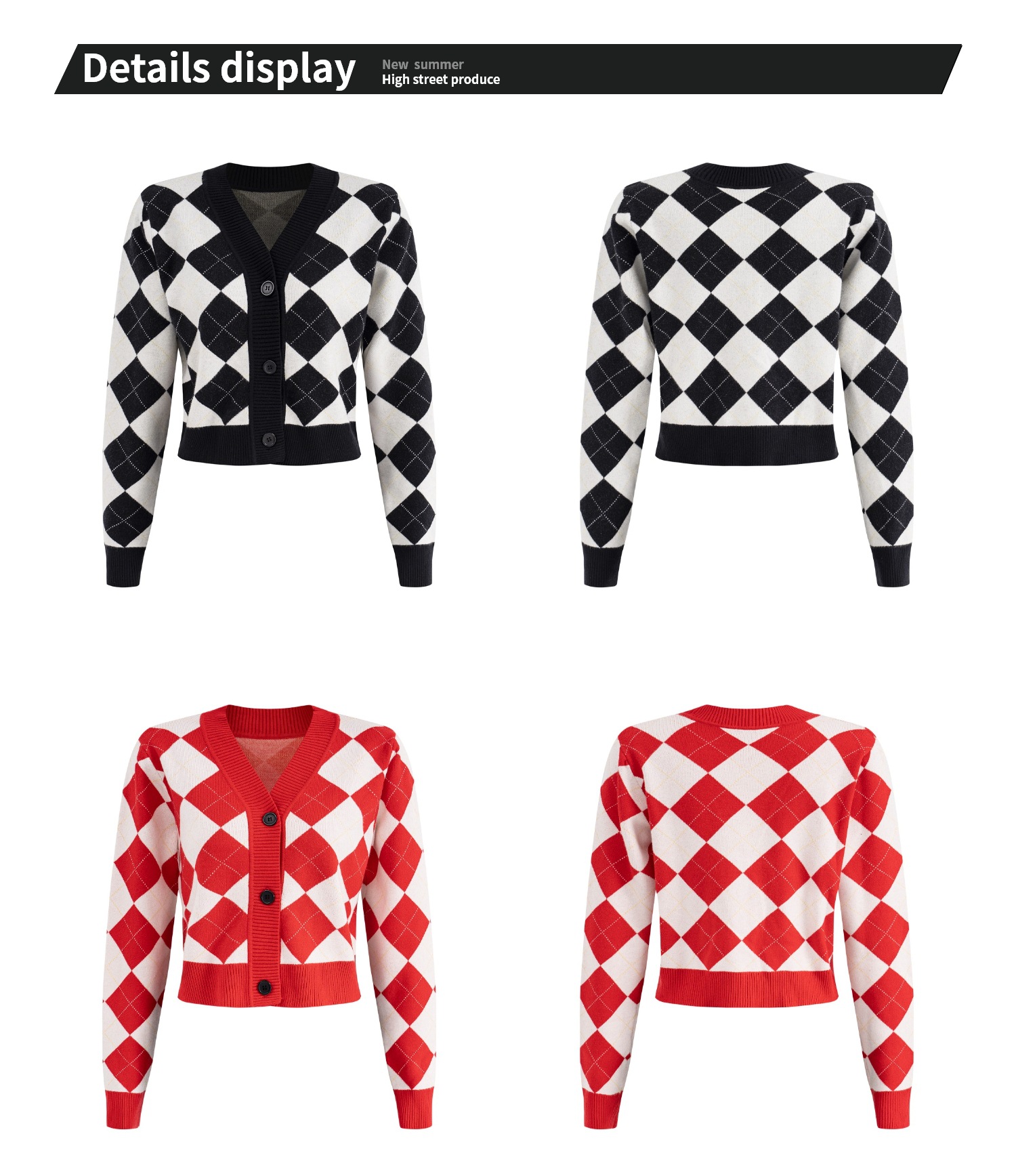 Áo len ngắn tay cổ chữ V với họa tiết hình thoi độc đáo, phù hợp cho thời tiết se lạnh. Chất liệu len đan mềm mại, giữ ấm tốt mà vẫn thoáng khí. Kiểu dáng ngắn tôn dáng, dễ dàng phối cùng quần jean hay chân váy. Mặc trực tiếp hoặc kết hợp với áo phông bên trong đều đẹp. Form áo ôn nhẹ, tạo vẻ thanh thoát và trẻ trung cho người mặc. | Tên sản phẩm: Áo Len Nữ Áo Len Cổ Chữ V Hàng Mùa Xuân Thu Đông - Thời Trang Nữ | Mã sản phẩm: a8865 - Giá: 850.000đ | Mã nhà sản xuất: GUDNG-G03Hình ảnh sản phẩm