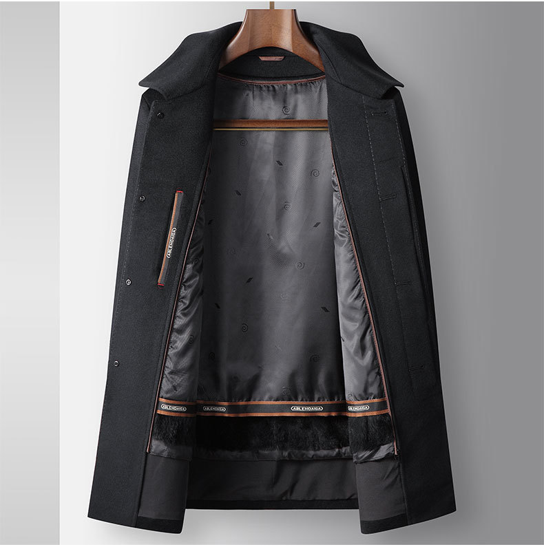 Áo khoác nam thiết kế dáng dài, phù hợp mặc trong tiết trời lạnh. Chất liệu chính từ sợi len mềm, kết hợp lớp lót bên trong bằng lông thỏ tự nhiên có thể tháo rời để dễ vệ sinh. Cổ áo kiểu bẻ, tạo vẻ lịch sự khi mặc cùng trang phục công sở. Sản phẩm giữ ấm tốt nhờ kết cấu dày dặn, có thể dùng làm áo khoác ngoài vào mùa thu đông. Phù hợp cho những dịp làm việc hoặc sinh hoạt hàng ngày. | Tên sản phẩm: Áo Khoác Nam Kín Cổ Hàng Mùa Xuân Thu Đông Trung Niên - Thời Trang Nam | Mã sản phẩm: A8875 - Giá: 4.020.000đ | Mã nhà sản xuất: VIDAG-G06Hình ảnh sản phẩm