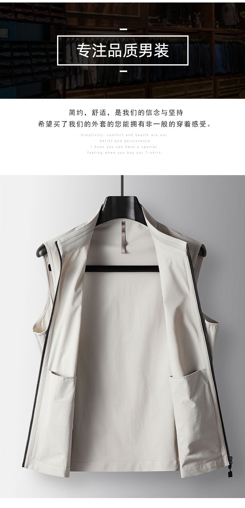 Áo khoác dạng veste không tay dành cho nam, thiết kế kiểu cổ đứng mang phong cách nhẹ nhàng, phù hợp cho công sở hoặc những dịp thư giãn. Chất vải có độ co giãn nhẹ tạo cảm giác thoải mái vận động. Sản phẩm sử dụng khóa kéo để mặc, dễ dàng phối cùng áo thun bên trong. Đây là mẫu áo đơn sắc, lịch sự và tiện dụng cho các quý ông trong nhiều hoàn cảnh khác nhau. | Tên sản phẩm: Áo Khoác Nam Hàng Mùa Xuân Thu Đông Phong Cách Trẻ Trung - Thời Trang Nam | Mã sản phẩm: A8877 - Giá: 1.590.000đ | Mã nhà sản xuất: VIDAG-G04Hình ảnh sản phẩm