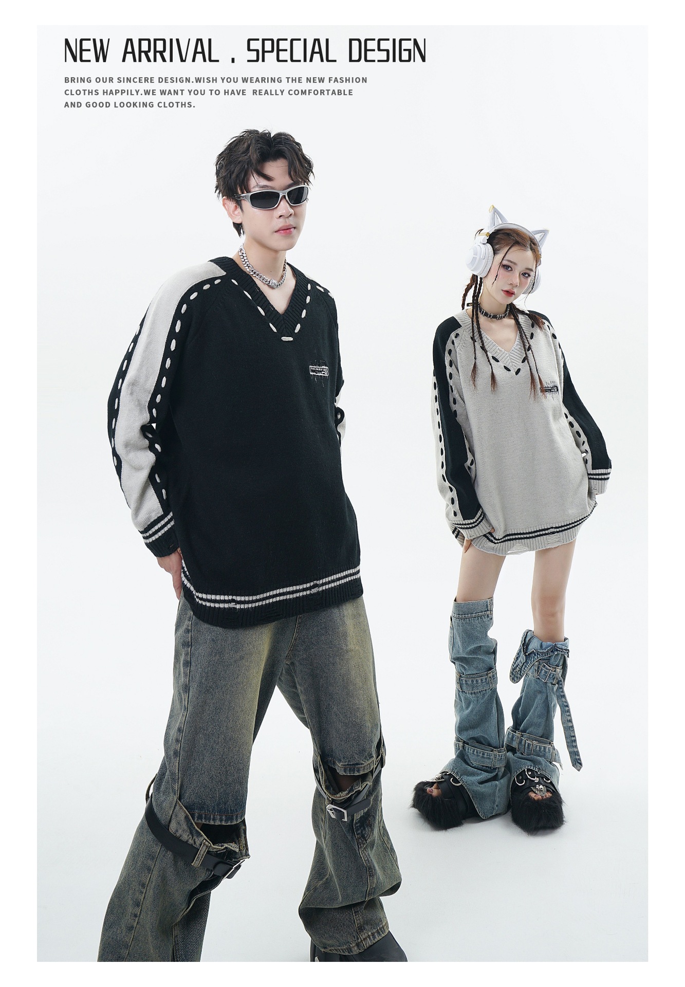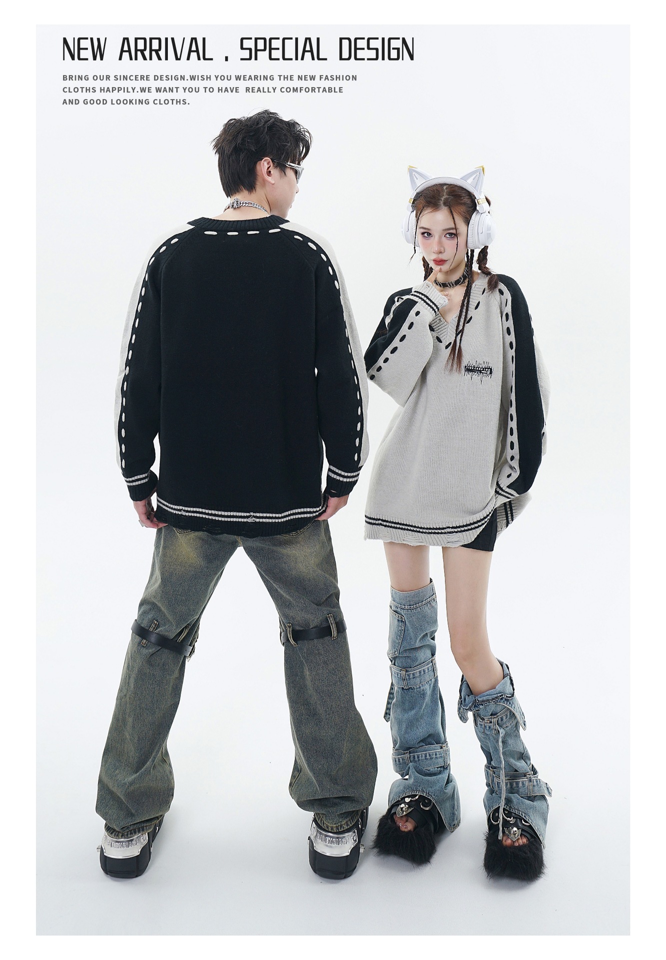 Áo len này có kiểu dáng rộng rãi thoải mái, cổ chữ V tạo điểm nhấn. Điểm đặc biệt nằm ở những đường thêu tinh tế và các mảng màu được phối một cách ngẫu hứng, cùng chi tiết dệt mỏng tạo vẻ đương thời. Chất liệu len đan mềm mại, giữ ấm nhẹ phù hợp cho thời tiết se lạnh. Bạn có thể mặc cùng quần jeans để tạo phong cách hàng ngày, hoặc phối với chân váy để có vẻ ngoại nổi bật hơn. Đây là mẫu áo unisex, cả nam và nữ đều mặc được. | Tên sản phẩm: Áo Len Nữ Áo Len Thêu Họa Tiết Hoa Cổ Chữ V Đồ Đôi Hàng Mùa Xuân Thu Đông - Thời Trang Nữ | Mã sản phẩm: a8949 - Giá: 970.000đ | Mã nhà sản xuất: GUDNG-G03Hình ảnh sản phẩm