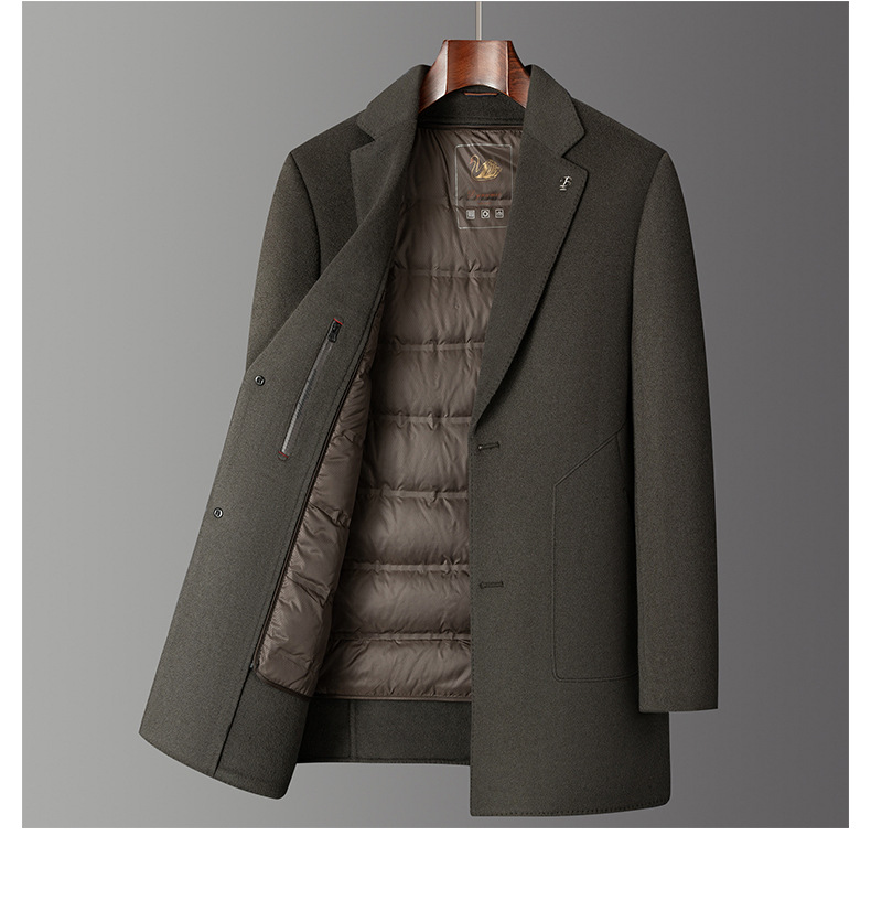 Áo khoác nam thiết kế hai mặt đều có thể mặc được, bên trong là lớp áo lông vũ dày dặn có thể tháo rời khi cần. Chất liệu chính từ sợi len tự nhiên, giữ ấm rất tốt cho những ngày trời lạnh. Sản phẩm phù hợp cho nhiều lứa tuổi, mặc kèm áo thun hoặc áo len bên trong đều phù hợp. Có thể kết hợp cùng quần âu hoặc quần jeans để tạo vẻ ngoài lịch sự và ấm cúng. | Tên sản phẩm: Áo Khoác Nam Dày Ấm Hàng Mùa Xuân Thu Đông - Thời Trang Nam | Mã sản phẩm: A8961 - Giá: 3.190.000đ | Mã nhà sản xuất: WATYM-G06Hình ảnh sản phẩm