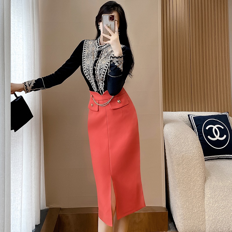 Bộ trang phục hai mảnh này có áo sơ mi kết hợp cùng chân váy ôm. Thiết kế tạo điểm nhấn ở phần áo với những mảng ghép tinh tế, giúp tôn lên đường nét cơ thể một cách gọn gàng. Chân váy dáng bó ôm sát vừa phải, tôn dáng hiệu quả. Bộ trang phục rất phù hợp để mặc đi làm hoặc dự những buổi gặp mặt. Có thể phối cùng giày cao gót và một chiếc túa xách nhỏ để hoàn thiện phong cách. | Tên sản phẩm: Đồ Bộ Nữ Dáng Ôm Cả Bộ 2 Món Hàng Mùa Xuân Thu Đông - Thời Trang Nữ | Mã sản phẩm: a8972 - Giá: 1.540.000đ | Mã nhà sản xuất: DODAP-G04Hình ảnh sản phẩm
