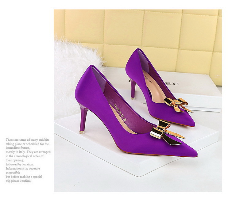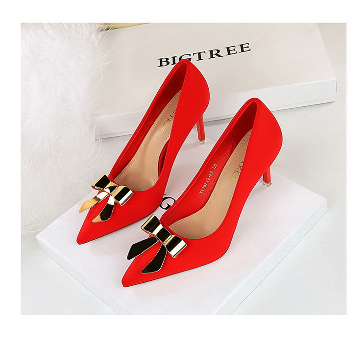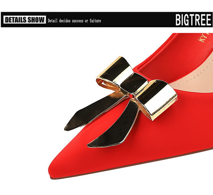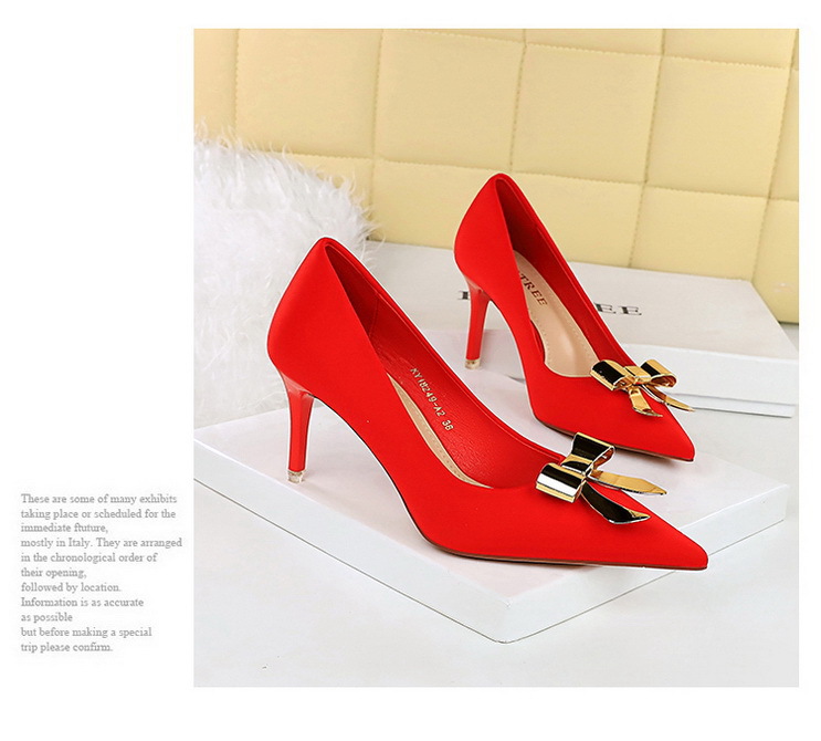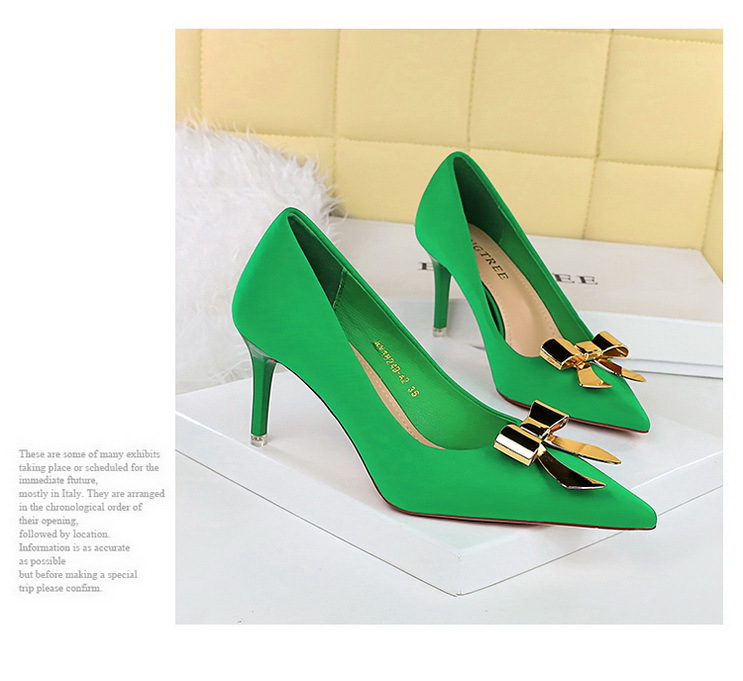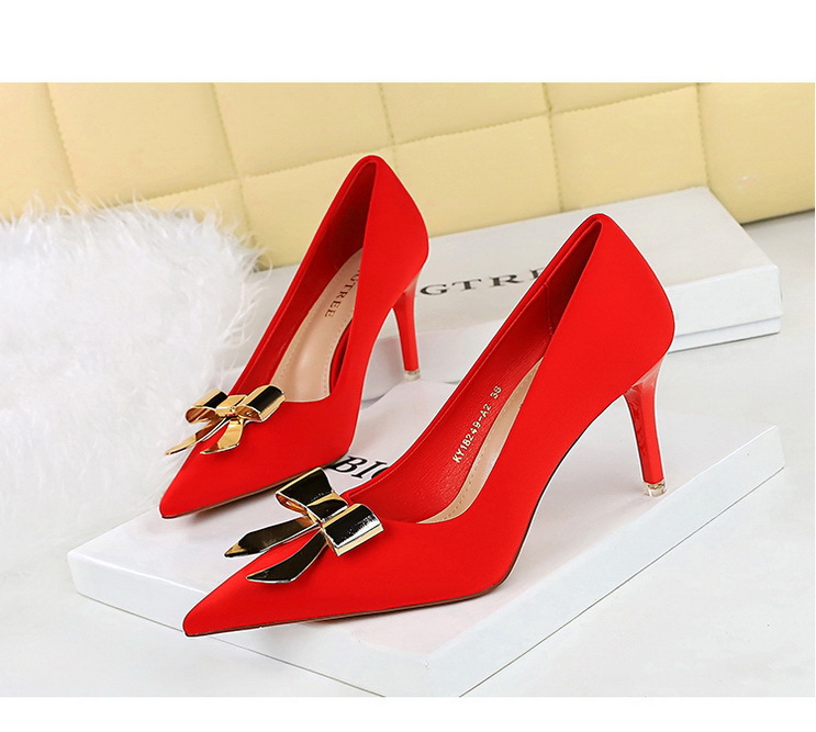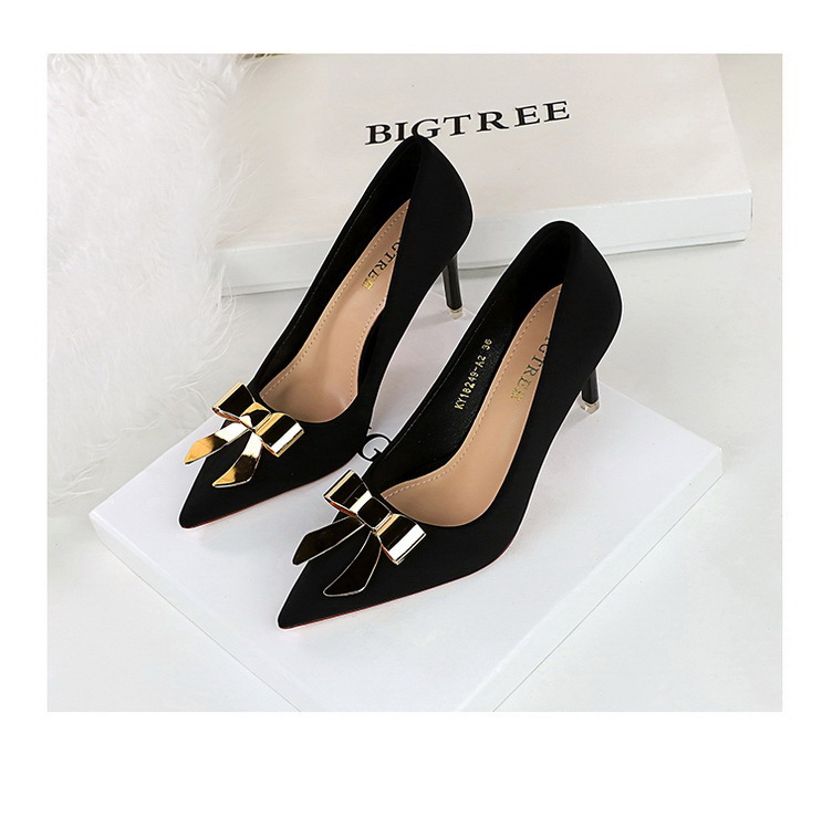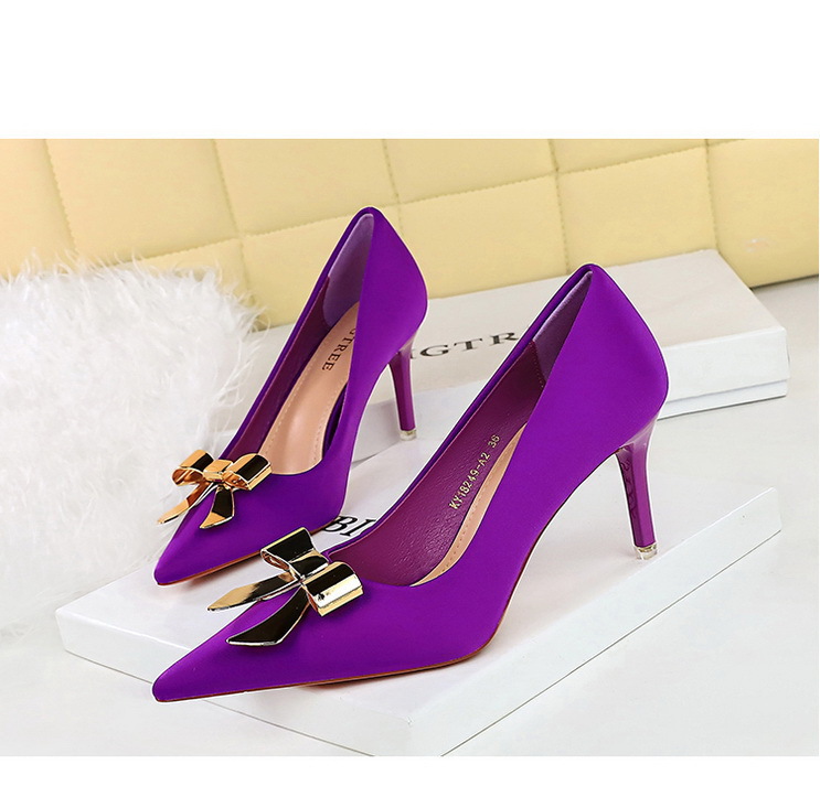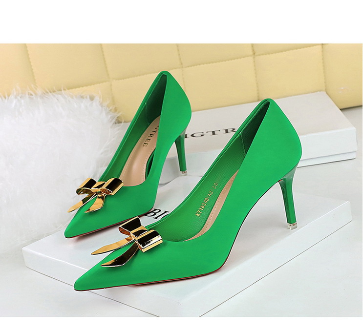 Đôi giày này có phần mũi nhọn thanh lịch và dáng gót cao thon thả, điểm nhấn là chiếc nơ kim loại lấp lánh phía trước. Chất liệu vải lụa mềm mại ôm sát chân, tạo cảm giác dễ chịu khi mang. Kiểu dáng cổ điển phù hợp để đi dự tiệc hoặc các buổi hẹn quan trọng. Bạn chỉ cần xỏ chân vào và cài nơ cố định là đã có ngay vẻ ngoại ưa nhìn. | Tên sản phẩm: Giày Cao Gót Nữ Thắt Nơ Bướm Mũi Nhọn Gót Nhọn Phong Cách Hàn Quốc - Giày Dép Nữ | Mã sản phẩm: A8985 - Giá: 640.000đ | Mã nhà sản xuất: PITYIN-G02Hình ảnh sản phẩm