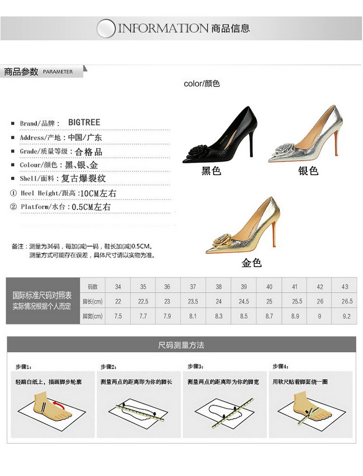 Đôi giày này mang phong cách cổ điển châu Âu, phù hợp cho các buổi tiệc. Kiểu dáng có mũi nhọn, cổ thấp và gót rất cao, nhọn. Điểm nhấn là họa tiết hoa trang trí tinh xảo ở phần thân giày, tạo nên vẻ đẹp nữ tính và quyến rũ. Sản phẩm giúp tôn lên dáng vẻ thanh lịch và tự tin cho người mang. Khi sử dụng, bạn nên chọn size phù hợp và kết hợp với những bộ trang phục dự tiệc để có diện mạo hoàn hảo nhất. | Tên sản phẩm: Giày Cao Gót Nữ Mũi Nhọn Gót Nhọn Họa Tiết Hoa Phong Cách Âu Mỹ - Giày Dép Nữ | Mã sản phẩm: A8989 - Giá: 700.000đ | Mã nhà sản xuất: PITYIN-G02Hình ảnh sản phẩm