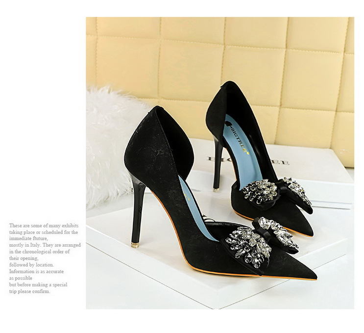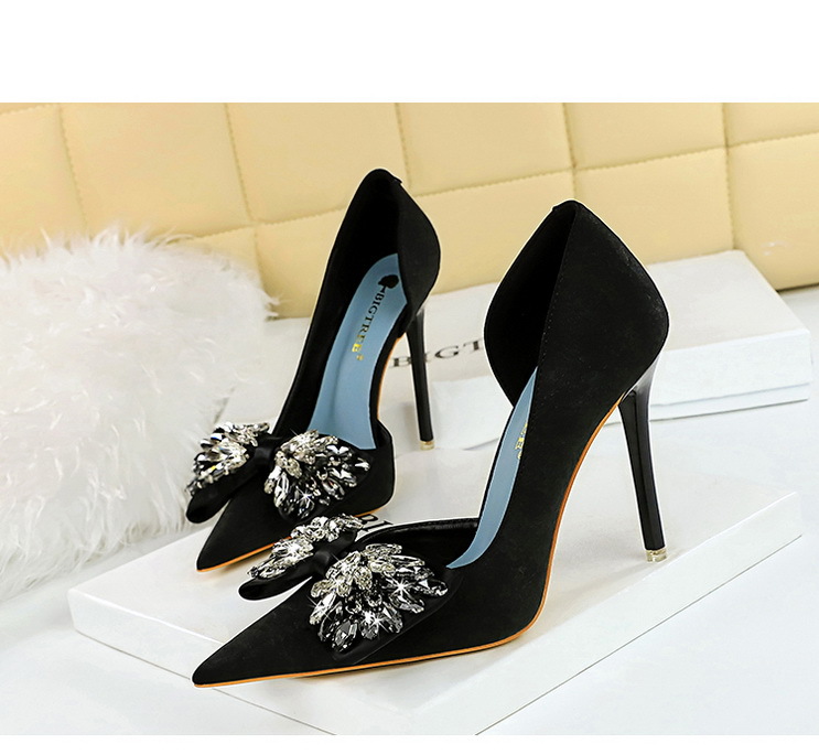 Đôi giày này có phần mũi nhọn và cổ giày thấp, tạo nên vẻ thanh thoát. Phần gót rất cao và mảnh, điểm nhấn là chiếc nơ đính hạt lấp lánh ở bên hông. Thiết kế độc đáo với chi tiết khoét nhẹ ở mỗi bên, làm từ chất liệu vải mềm mại, mang lại cảm giác dễ chịu. Bạn có thể phối cùng nhiều loại trang phục khác nhau để tạo điểm nhấn nổi bật cho tổng thể. | Tên sản phẩm: Giày Cao Gót Nữ Thắt Nơ Bướm Gắn Đá Mũi Nhọn Gót Nhọn Phong Cách Âu Mỹ - Giày Dép Nữ | Mã sản phẩm: A8991 - Giá: 750.000đ | Mã nhà sản xuất: PITYIN-G02Hình ảnh sản phẩm