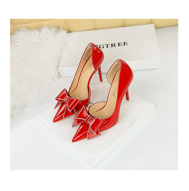 Đôi giày này có phần mũi nhọn thanh lịch và cổ giày khoét sâu, tạo điểm nhấn với chi tiết nơ đá bóng lấp lánh và ôm vừa vặn bàn chân nhờ thiết kế khoét phần hông. Kiểu dáng mang phong cách châu Âu hiện đại, phù hợp để đi trong các buổi tiệc hay sự kiện. Bạn chỉ cần xỏ chân vào, điều chỉnh dây nơ cho vừa vặn là có thể tự tin bước đi. | Tên sản phẩm: Giày Cao Gót Nữ Thắt Nơ Bướm Gắn Đá Mũi Nhọn Phong Cách Âu Mỹ - Giày Dép Nữ | Mã sản phẩm: A9003 - Giá: 650.000đ | Mã nhà sản xuất: PITYIN-G02Hình ảnh sản phẩm