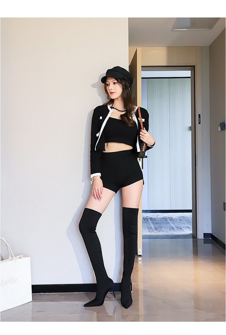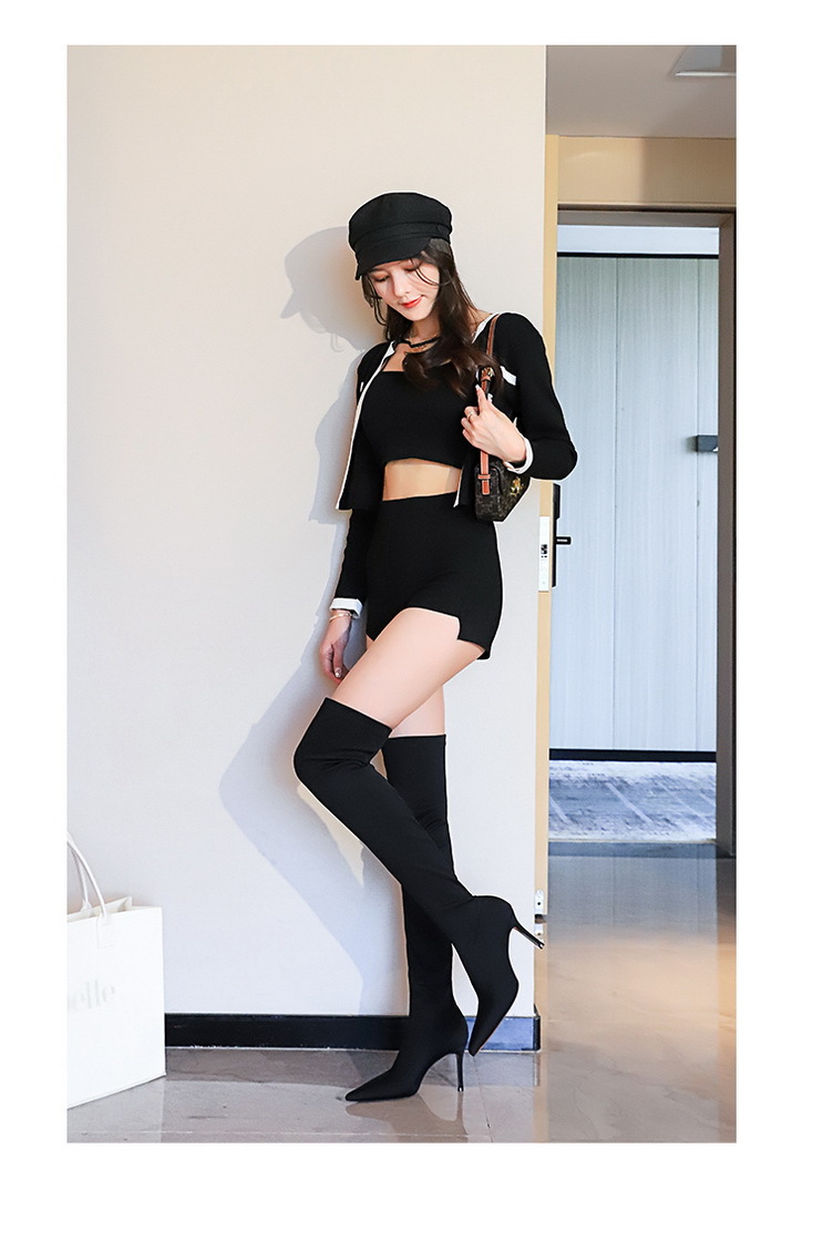 Đôi bốt cổ cao này mang phong cách châu Âu hiện đại với thiết kế đơn giản. Sản phẩm có phần mũi nhọn và gót thanh thoát, giúp tôn dáng đôi chân một cách tự nhiên. Chất liệu co giãn nhẹ ôm sát vào chân, tạo cảm giác dễ chịu khi mang. Bạn có thể dùng để phối cùng nhiều kiểu trang phục khác nhau, phù hợp cho các buổi tụ tập bạn bè. Mang giày và kéo ống bốt lên qua đầu gối để hoàn tất. | Tên sản phẩm: Boot Cổ Cao Nữ Cổ Cao Qua Gối Mũi Nhọn Phong Cách Âu Mỹ - Giày Dép Nữ | Mã sản phẩm: A9004 - Giá: 980.000đ | Mã nhà sản xuất: PITYIN-G03Hình ảnh sản phẩm