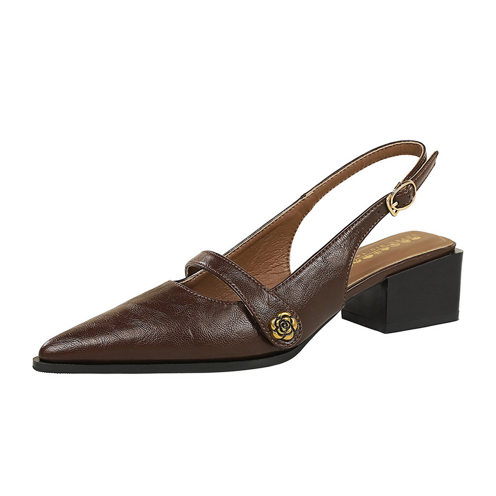 Đôi giày này mang phong cách cổ điển châu Âu với điểm nhấn là hoa trà màu nâu tinh tế. Kiểu dáng có quai ngang mắt cá cùng phần gót thấp vững chãi, tạo nên vẻ đẹp dịu dàng và nữ tính. Phần thiết kế hở gót và qu hậu giúp ôm chân thoải mái. Sản phẩm phù hợp để đi làm, dạo phố hay dự các buổi hẹn thông thường. Cách sử dụng đơn giản, chỉ cần qu sau có khóa kéo hoặc khóa cài để điều chỉnh dễ dàng. | Tên sản phẩm: Giày Cao Gót Nữ Gót Vuông Họa Tiết Hoa Phong Cách Âu Mỹ - Giày Dép Nữ | Mã sản phẩm: A9005 - Giá: 610.000đ | Mã nhà sản xuất: PITYIN-G02Hình ảnh sản phẩm