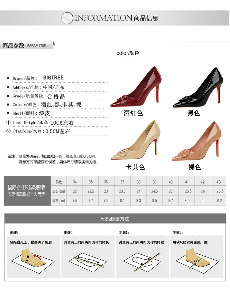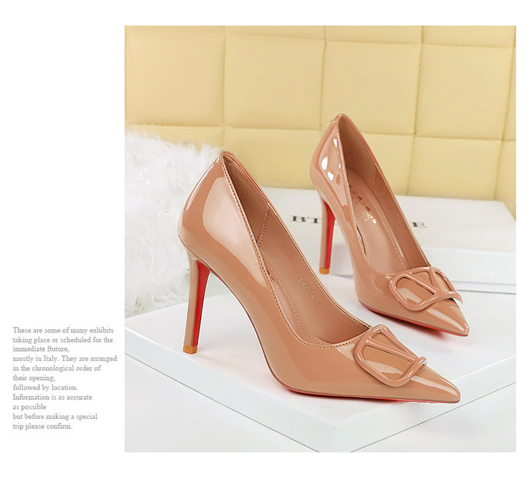 Đôi giày này có phần mũi nhọn và gót thanh mảnh, tạo nên điểm nhấn nổi bật. Kiểu dáng theo phong cách châu Âu hiện đại, phù hợp cho các buổi tiệc hay sự kiện. Trên mặt giày có chi tiết khóa hình chữ V cách điệu, giúp ôm vừa vặn bàn chân. Chất liệu bóng mịn dễ dàng vệ sinh. Bạn có thể kết hợp cùng váy liền hoặc quần âu để tôn dáng. | Tên sản phẩm: Giày Cao Gót Nữ Mũi Nhọn Gót Nhọn Phong Cách Âu Mỹ - Giày Dép Nữ | Mã sản phẩm: A9009 - Giá: 650.000đ | Mã nhà sản xuất: PITYIN-G02Hình ảnh sản phẩm