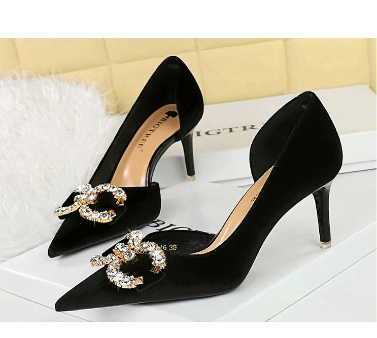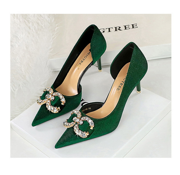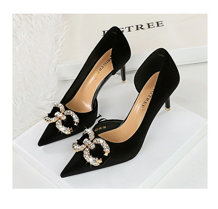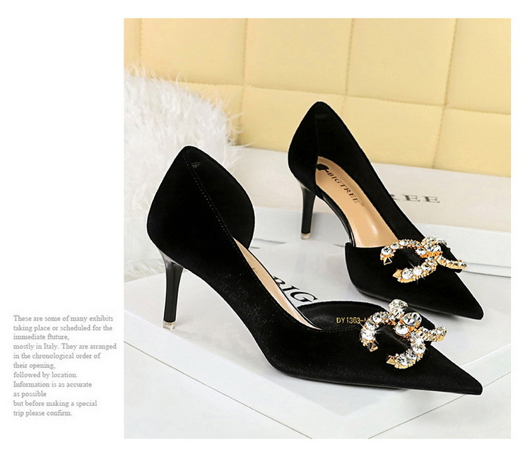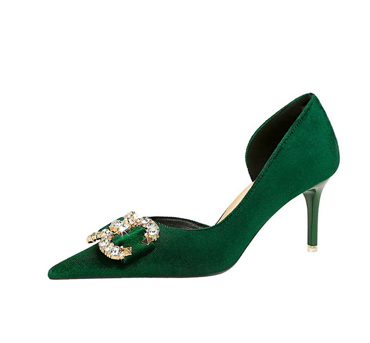 Đôi giày cao gót này có phần mũi nhọn thanh lịch và mặt trên bằng vải mịn. Điểm nhấn là chi tiết khoét hờ ở bên hông, được điểm xuyến bằng hạt đá lấp lánh và nơ kết từ hạt ngọc tr nhỏ xinh. Kiểu dáng cổ thấp ôm chân, phù hợp để mang trong các buổi tiệc hay sự kiện. Bạn chỉ cần xỏ chân vào, điều chỉnh dây nơ cho vừa vặn và bước đi tự tin. | Tên sản phẩm: Giày Cao Gót Nữ Thắt Nơ Bướm Gắn Đá Mũi Nhọn - Giày Dép Nữ | Mã sản phẩm: A9013 - Giá: 700.000đ | Mã nhà sản xuất: PITYIN-G02Hình ảnh sản phẩm