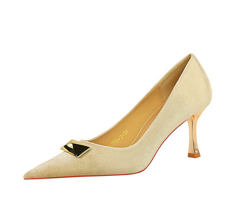 Đôi giày này mang phong cách châu Âu hiện đại, kiểu dáng mũi nhọn và cổ thấp tạo nên vẻ thanh lịch. Phần gót được làm từ chất liệu bền đẹp, điểm nhấn là chi tiết khóa trang trí tinh tế. Bề mặt giày sử dụng chất liệu mềm mại cho cảm giác dễ chịu khi mang. Sản phẩm phù hợp cho các buổi tiệc hoặc sự kiện. Khi sử dụng, nên vệ sinh nhẹ nhàng bằng khăn mềm để giữ giày luôn sạch đẹp. | Tên sản phẩm: Giày Cao Gót Nữ Mũi Nhọn Phong Cách Âu Mỹ - Giày Dép Nữ | Mã sản phẩm: A9031 - Giá: 640.000đ | Mã nhà sản xuất: PITYIN-G02Hình ảnh sản phẩm