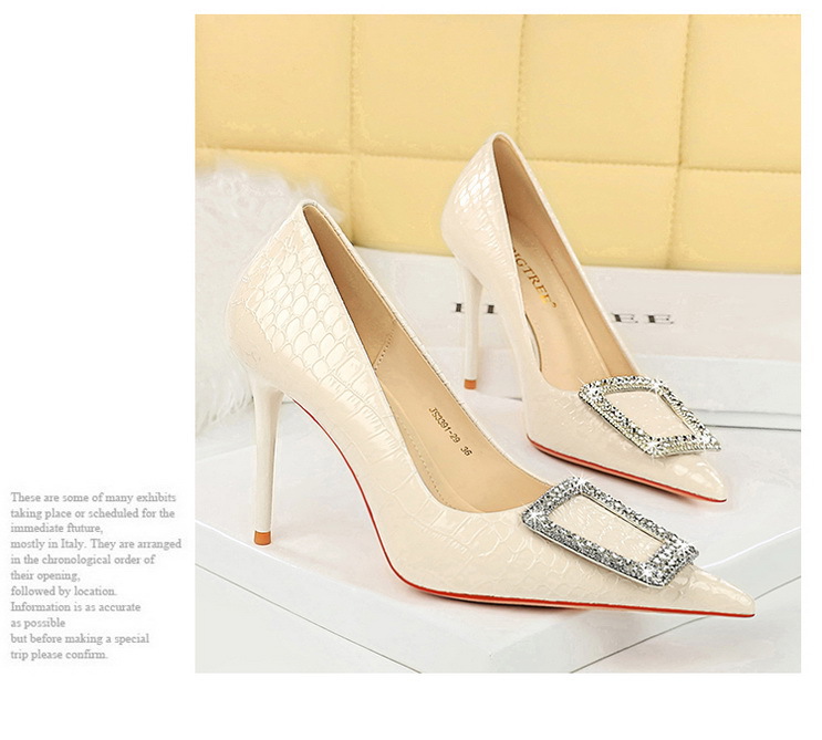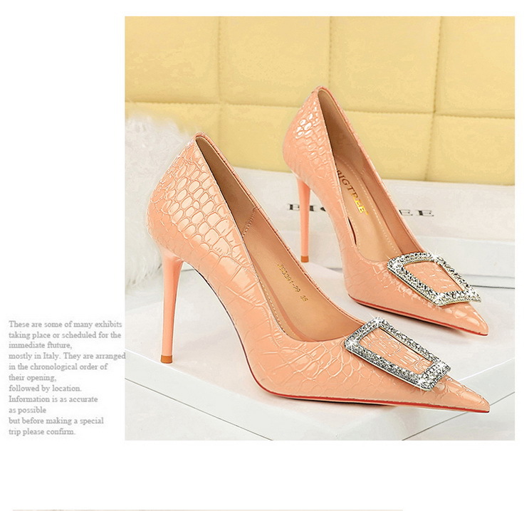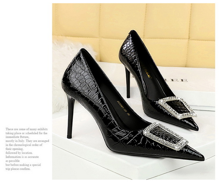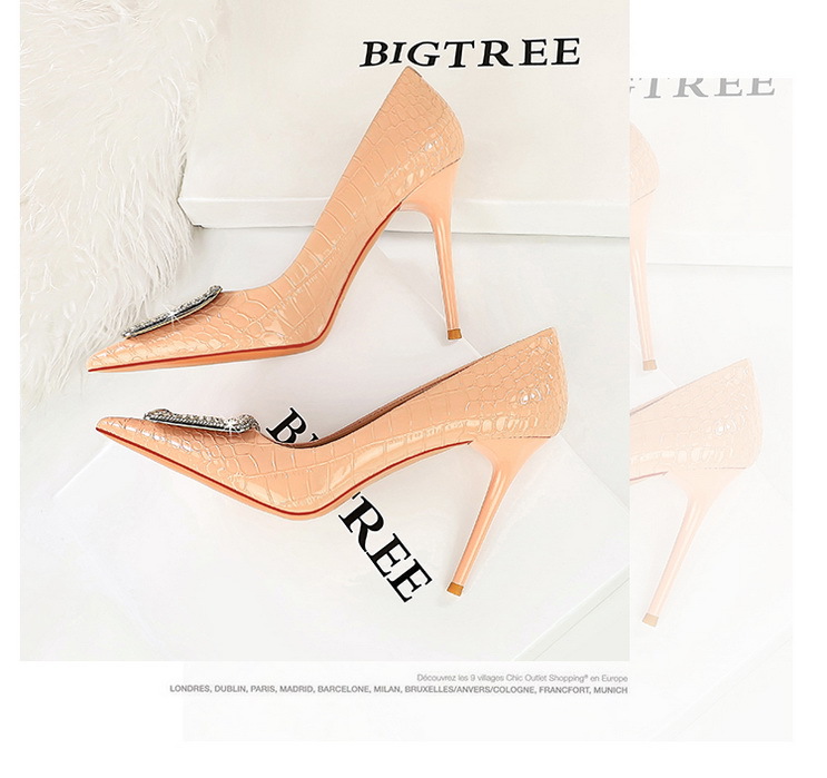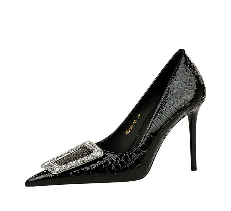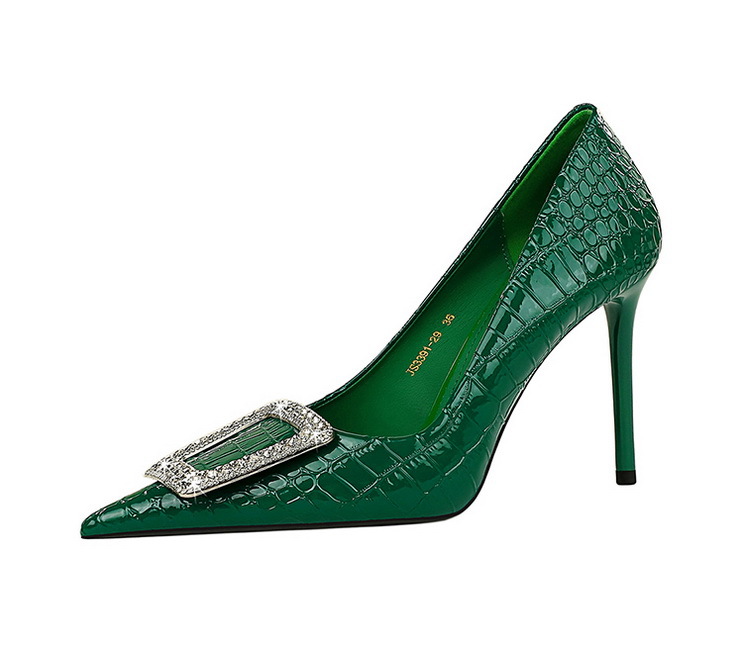 Đôi giày này mang phong cách trẻ trung, hiện đại. Phần mũi nhọn và gót cao, nhỏ tạo dáng thanh thoát cho người mang. Chất da bóng kết hợp họa tiết vân da rắn và điểm nhấn là khóa đá lấp lánh, tăng thêm phần nổi bật. Ôm sát chân với thiết kế cổ thấp, dễ dàng phối cùng nhiều trang phục như quần âu, váy liền để đi làm, dự tiệc hoặc gặp mặt. | Tên sản phẩm: Giày Cao Gót Nữ Gắn Đá Mũi Nhọn Gót Nhọn Phong Cách Hàn Quốc - Giày Dép Nữ | Mã sản phẩm: A9045 - Giá: 750.000đ | Mã nhà sản xuất: PITYIN-G02Hình ảnh sản phẩm