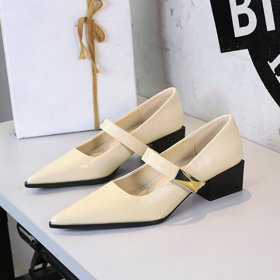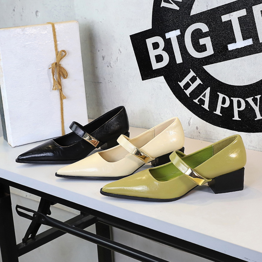 Đôi giày này mang phong cách cổ điển châu Âu, với kiểu dáng hở mũi nhọn và quai ngang đặc trưng. Điểm nhấn là chi tiết khóa kim loại tinh tế, tôn lên vẻ đẹp nữ tính. Phần gót vừa phải giúp tăng chiều cao nhẹ nhàng mà vẫn thoải mái khi di chuyển. Bạn có thể dễ dàng phối cùng váy liền hay quần âu để tạo điểm nhấn cho trang phục thường ngày. | Tên sản phẩm: Giày Cao Gót Nữ Mũi Nhọn Gót Vuông Phong Cách Âu Mỹ - Giày Dép Nữ | Mã sản phẩm: A9053 - Giá: 590.000đ | Mã nhà sản xuất: PITYIN-G01Hình ảnh sản phẩm