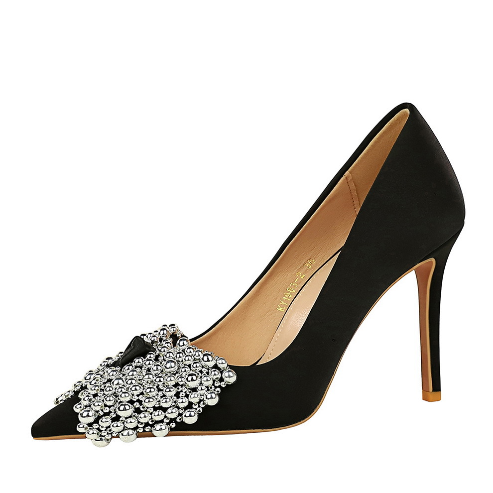 Đôi giày này có phần mũi nhọn thanh lịch và dây nơ trang trí duyên dáng ở cổ giày. Chất liệu vải bóng tạo cảm giác mềm mại và thoải mái cho đôi chân. Phần gót rất cao và thon, giúp tôn dáng một cách tinh tế. Kiểu dáng cổ thấp phù hợp để kết hợp với nhiều loại trang phục khác nhau. Bạn có thể dùng giày để đi làm, dự tiệc hoặc những dịp giao lưu thông thường. | Tên sản phẩm: Giày Cao Gót Nữ Thắt Nơ Bướm Mũi Nhọn Gót Nhọn Phong Cách Hàn Quốc - Giày Dép Nữ | Mã sản phẩm: A9072 - Giá: 750.000đ | Mã nhà sản xuất: PITYIN-G02Hình ảnh sản phẩm