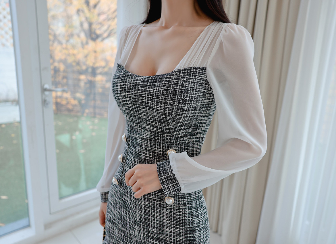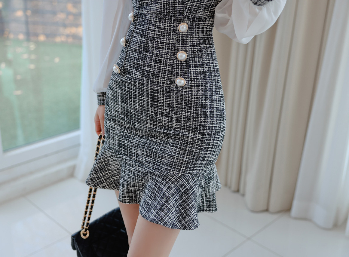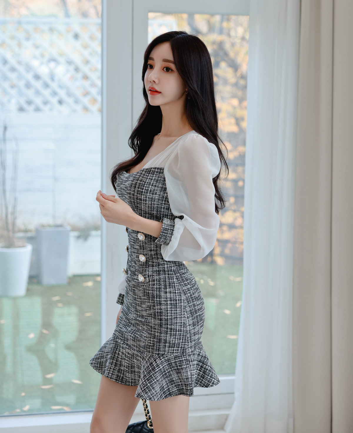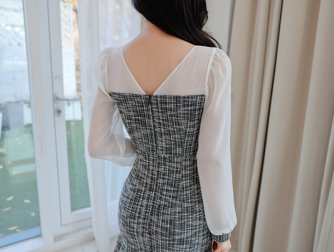 Chiếc đầm ngắn tay dài này có điểm nhấn từ phần cổ áo vuông độc đáo. Thiết kế kết hợp nhiều mảng màu tương phản tạo nên vẻ năng động, trẻ trung. Form dáng ôm gọn cơ thể, phần chân váy xòe nhẹ như đuôi cá duyên dáng. Sản phẩm phù hợp cho nhiều dịp đi chơi, dạo phố hay gặp gỡ bạn bè. Bạn có thể phối cùng giày thể thao hoặc giày bệt để tạo phong cách riêng. | Tên sản phẩm: Váy Đầm Liền Thân Nữ Dài Tay Kiểu Đuôi Cá Hàng Mùa Xuân Thu Đông Phong Cách Hàn Quốc - Thời Trang Nữ | Mã sản phẩm: A9074 - Giá: 790.000đ | Mã nhà sản xuất: JUOUTO-G02Hình ảnh sản phẩm