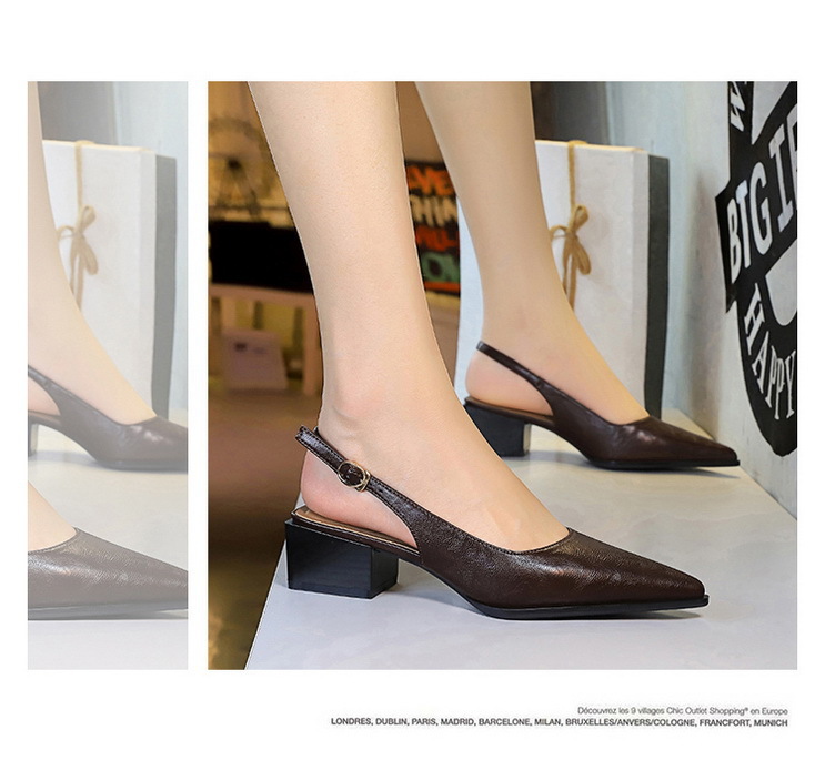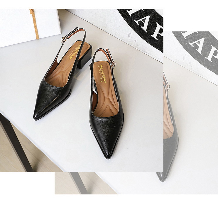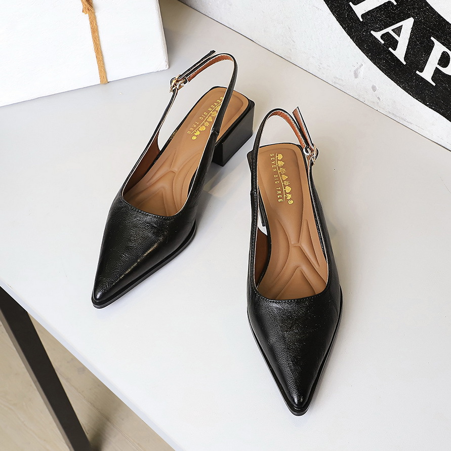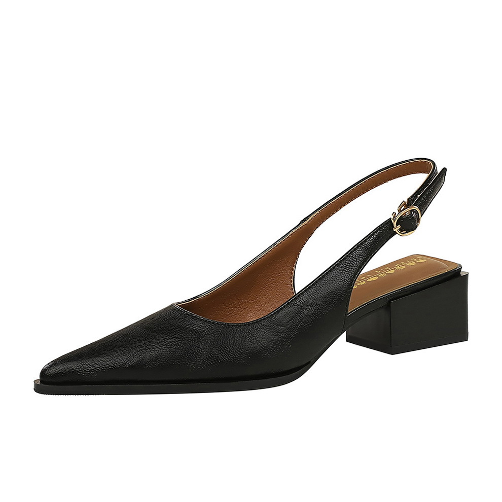 Đôi giày này có phần mũi nhọn và cổ thấp, tạo cảm giác chân thon dài. Kiểu dáng đơn giản, thanh lịch với phần gót vừa phải, vững chắc. Đặc biệt, phần qu hậu để hở gót và có dây cài phía sau giúp ôm chân một cách nhẹ nhàng. Bạn có thể dễ dàng phối cùng nhiều trang phục như quần âu, váy công sở hay đi chơi hàng ngày. Chỉ cần xỏ chân vào và cài qu là đã sẵn sàng. | Tên sản phẩm: Giày Cao Gót Nữ Mũi Nhọn Gót Vuông Phong Cách Âu Mỹ - Giày Dép Nữ | Mã sản phẩm: A9075 - Giá: 590.000đ | Mã nhà sản xuất: PITYIN-G01Hình ảnh sản phẩm