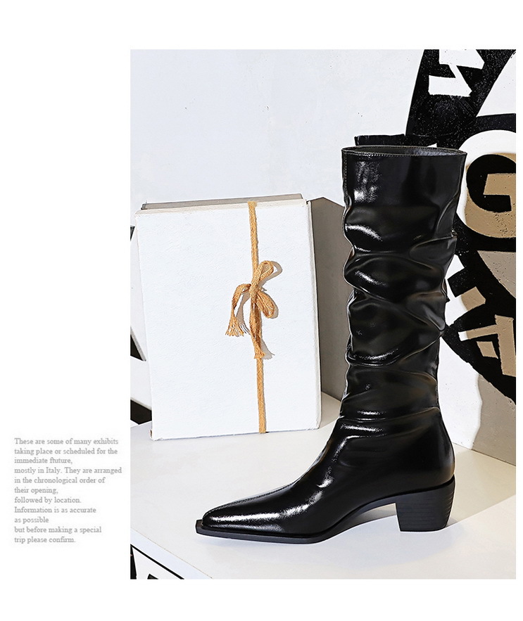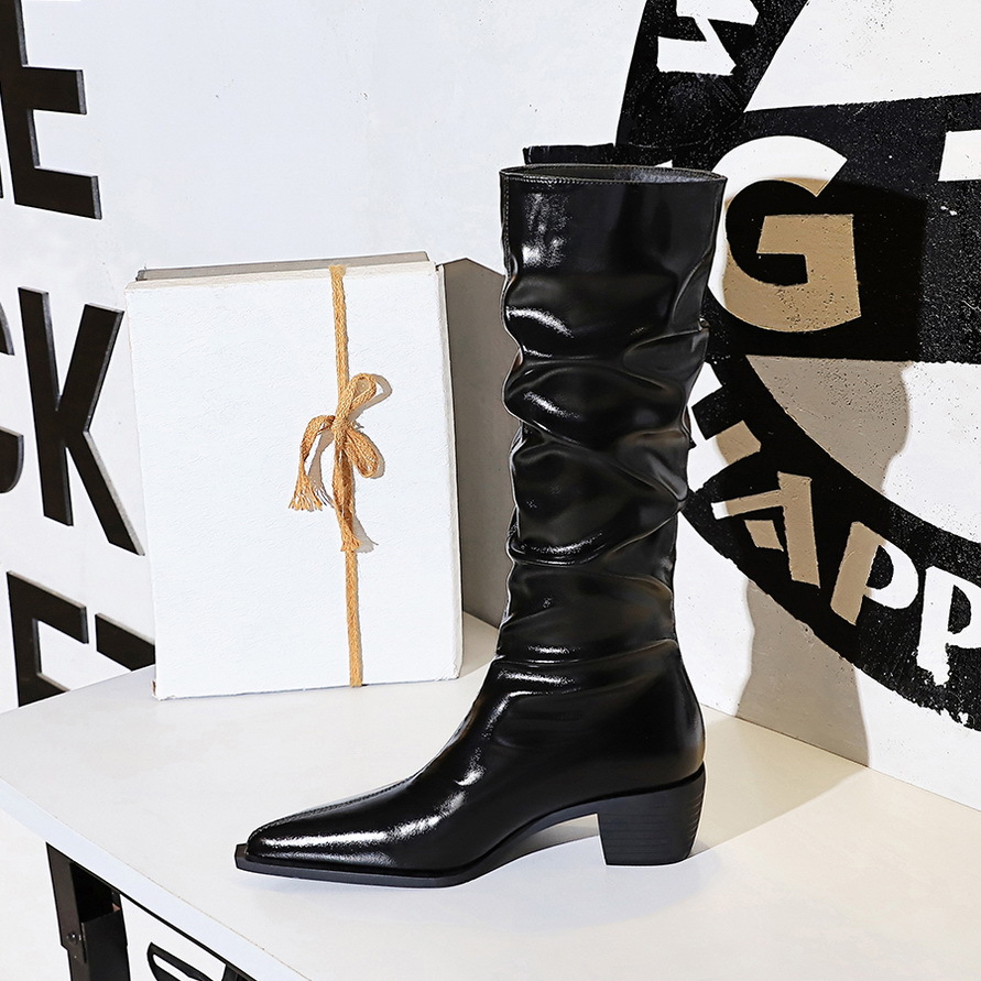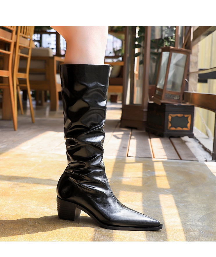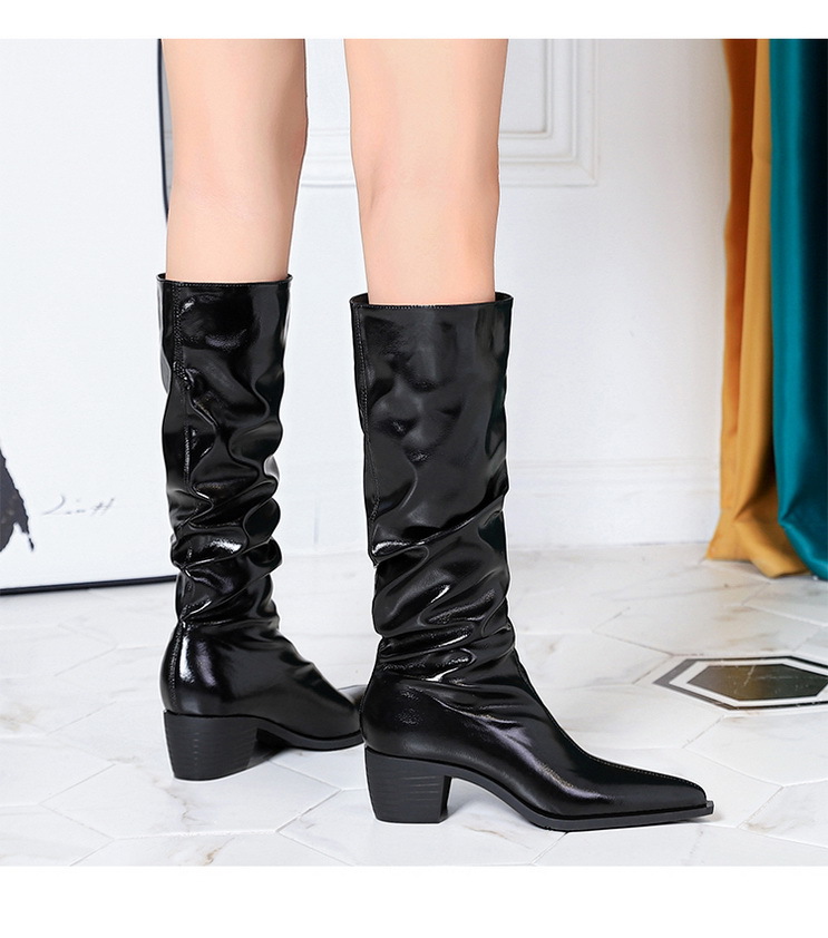 Đôi bốt cổ cao này mang phong cách thời trang phương Tây cổ điển. Sản phẩm có phần mũi nhọn, gót thấp vừa phải giúp bạn dễ dàng di chuyển. Bốt được kết hợp giữa chất liệu da nhăn và da bóng, tạo nên điểm nhấn riêng biệt. Kiểu dáng bốt kỵ sĩ này rất dễ phối đồ, phù hợp cho nhiều dịp khác nhau. Bạn chỉ cần xỏ chân vào và kéo khóa phía sau là đã có ngay một phong cách thời thượng. | Tên sản phẩm: Cao Gót Nữ Mũi Nhọn Gót Vuông Phong Cách Âu Mỹ - Giày Dép Nữ | Mã sản phẩm: A9087 - Giá: 920.000đ | Mã nhà sản xuất: PITYIN-G03Hình ảnh sản phẩm