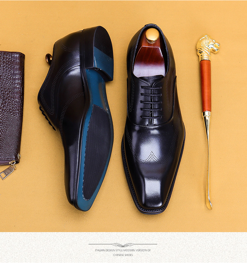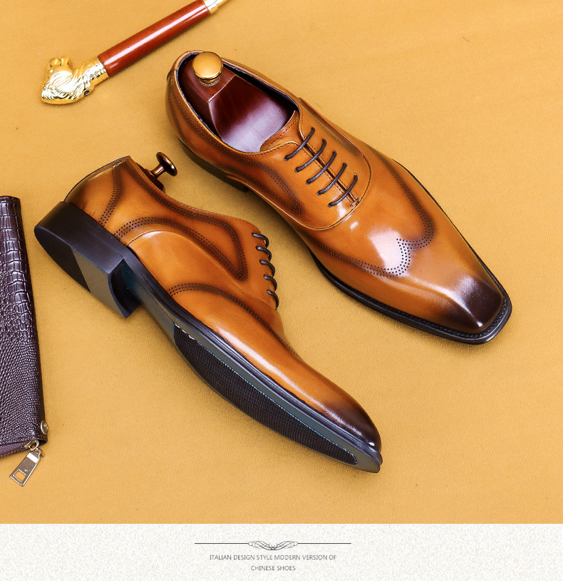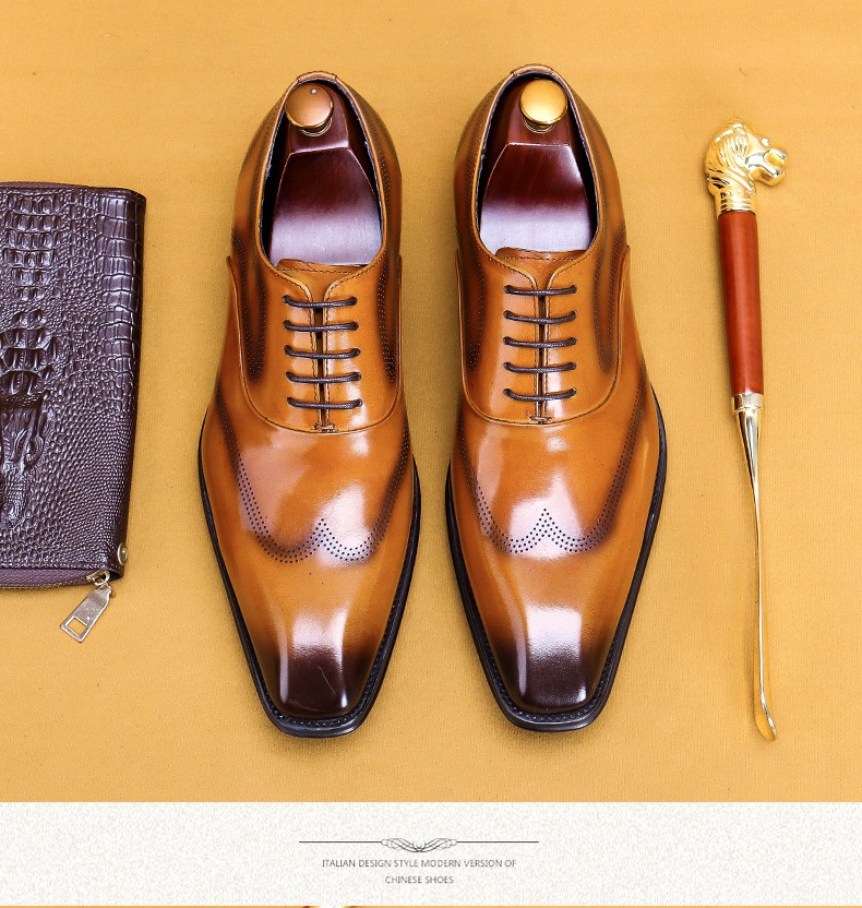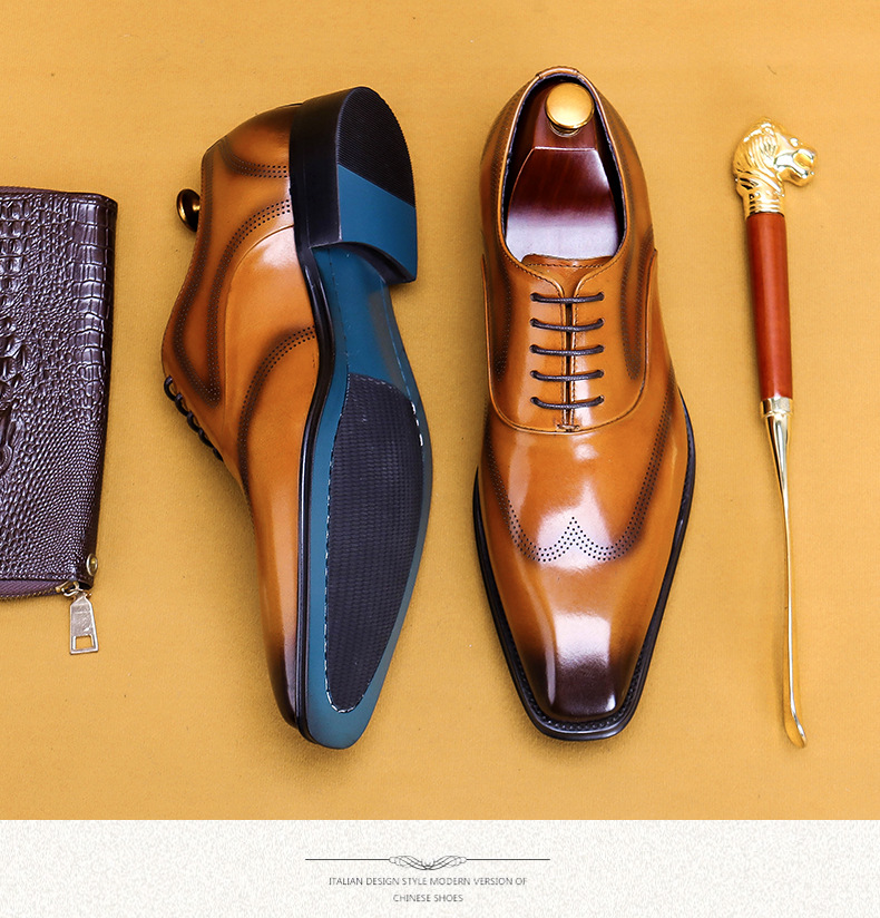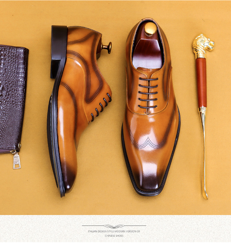 Giày da dành cho nam giới, với kiểu dáng đầu vuông và đường nét chạm khắc tinh tế theo phong cách châu Âu. Sản phẩm sử dụng kỹ thuật đánh bóng thủ công tạo nên những vệt màu đậm nhạt tự nhiên trên bề mặt da, mang đến vẻ ngoài độc đáo và có chiều sâu. Đế giày được làm chắc chắn, ôm chân và thoải mái khi di chuyển. Dễ dàng phối hợp cùng quần âu hoặc quần kaki trong nhiều dịp khác nhau. Sử dụng khăn mềm để vệ sinh bụi bẩn và bảo quản nơi khô ráo. | Tên sản phẩm: Giày Da Nam Họa Tiết Hoa - Giày Dép Nam | Mã sản phẩm: A9093 - Giá: 2.680.000đ | Mã nhà sản xuất: SHERAW-G06Hình ảnh sản phẩm
