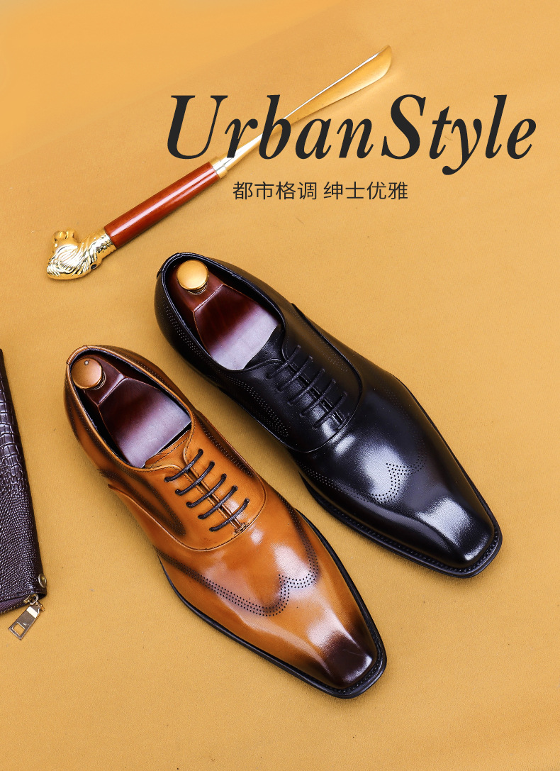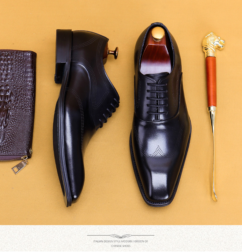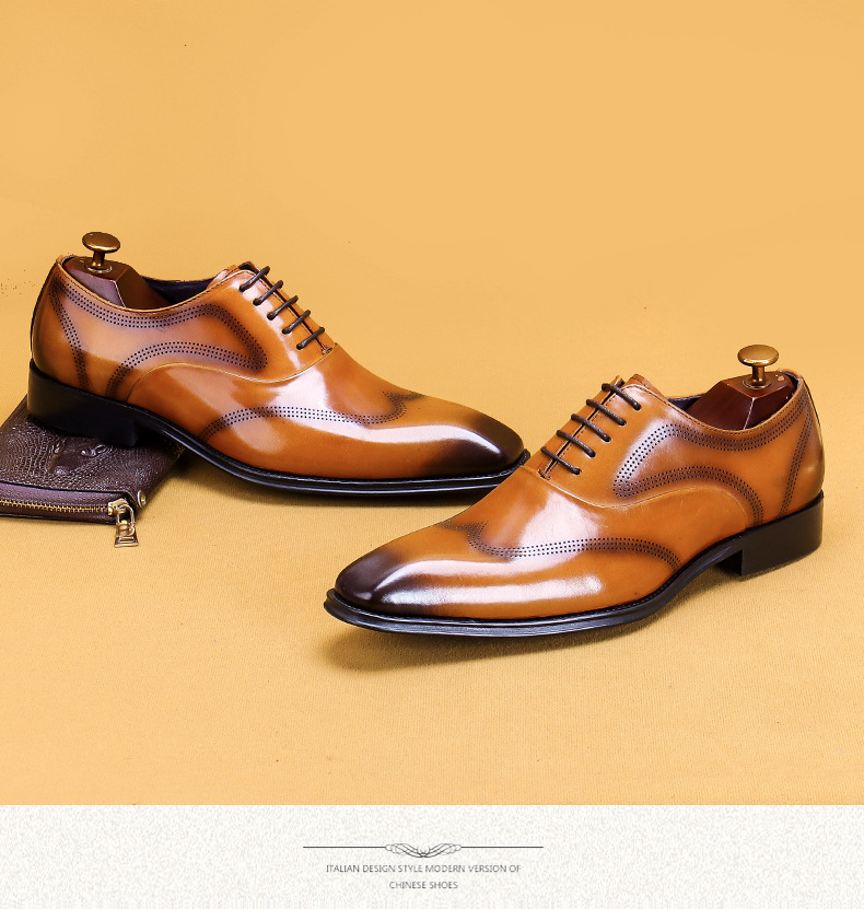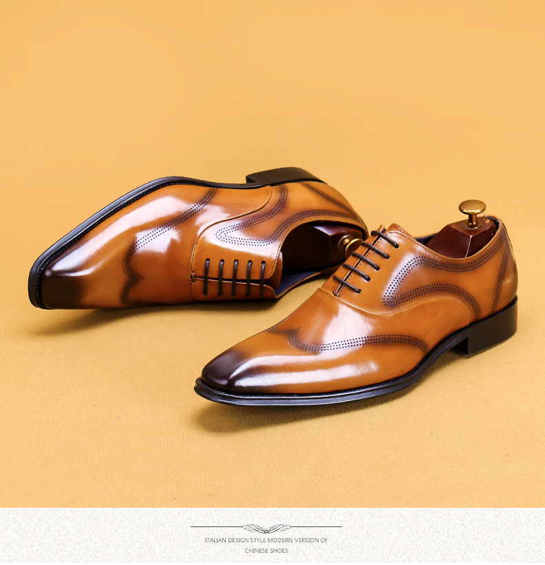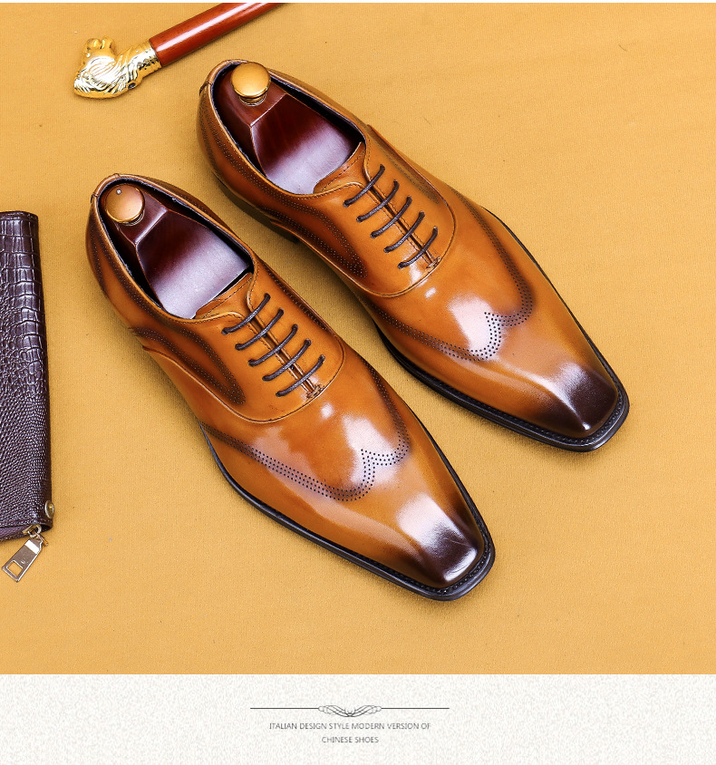 Giày da dành cho nam giới, với kiểu dáng đầu vuông và đường nét chạm khắc tinh tế theo phong cách châu Âu. Sản phẩm sử dụng kỹ thuật đánh bóng thủ công tạo nên những vệt màu đậm nhạt tự nhiên trên bề mặt da, mang đến vẻ ngoài độc đáo và có chiều sâu. Đế giày được làm chắc chắn, ôm chân và thoải mái khi di chuyển. Dễ dàng phối hợp cùng quần âu hoặc quần kaki trong nhiều dịp khác nhau. Sử dụng khăn mềm để vệ sinh bụi bẩn và bảo quản nơi khô ráo. | Tên sản phẩm: Giày Da Nam Họa Tiết Hoa - Giày Dép Nam | Mã sản phẩm: A9093 - Giá: 2.680.000đ | Mã nhà sản xuất: SHERAW-G06Hình ảnh sản phẩm