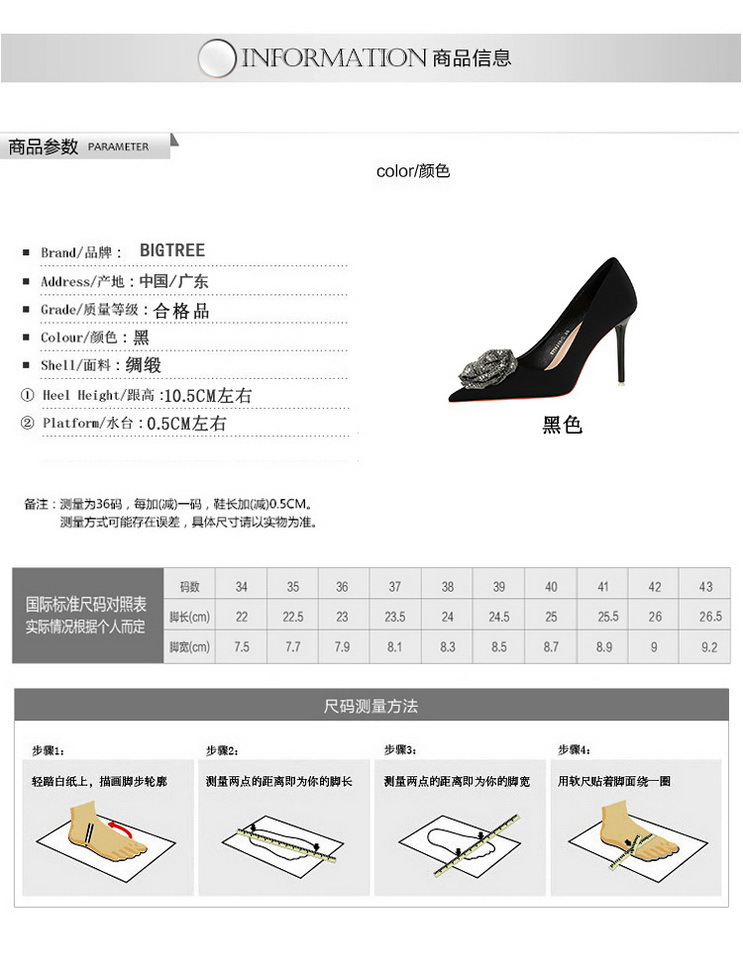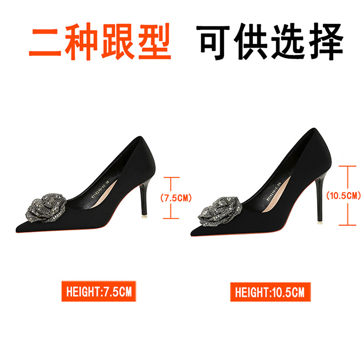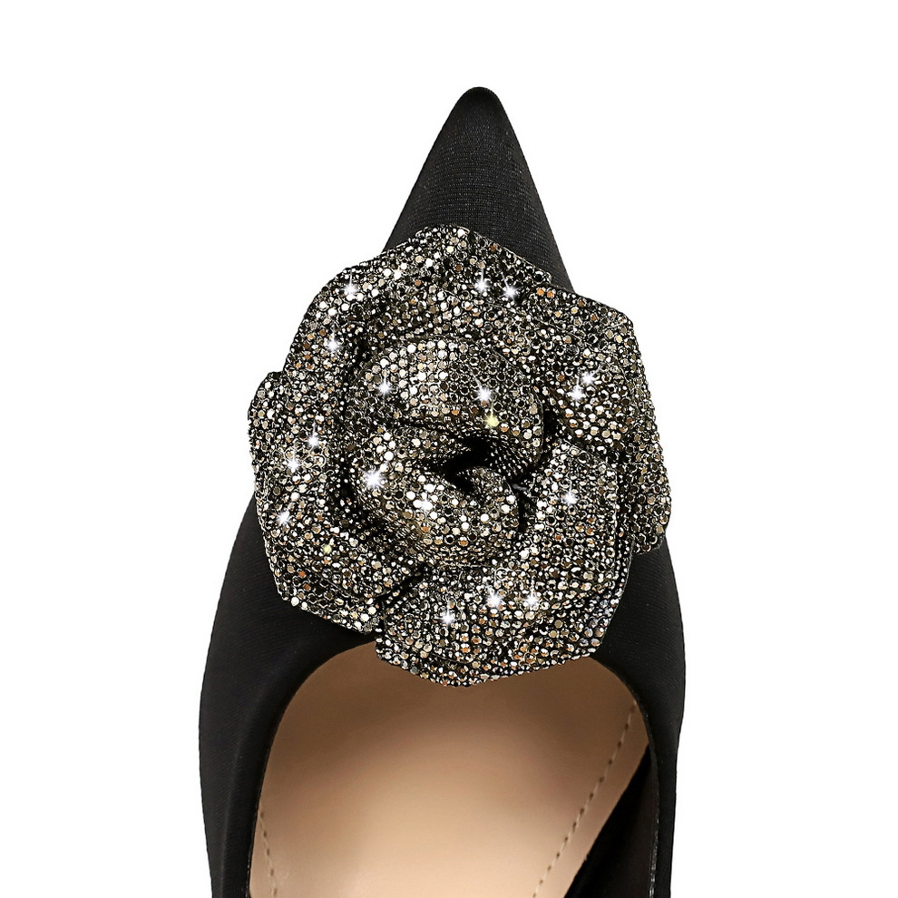 Đôi giày này có phần mũi nhọn thanh lịch và cổ giày thấp ôm sát. Chất liệu vải lụa mềm mại tạo cảm giác dễ chịu. Điểm nhấn nổi bật là bông hoa hồng được kết từ những viên đá lấp lánh, tăng thêm phần nữ tính. Phần gót cực cao và nhỏ giúp tôn dáng người sử dụng một cách tinh tế. Kiểu dáng phù hợp để đi trong nhiều dịp khác nhau. Khi sử dụng, nên chọn size vừa vặn và bảo quản nơi khô ráo. | Tên sản phẩm: Giày Cao Gót Nữ Gắn Đá Mũi Nhọn Gót Nhọn Họa Tiết Hoa Phong Cách Âu Mỹ - Giày Dép Nữ | Mã sản phẩm: A9105 - Giá: 770.000đ | Mã nhà sản xuất: PITYIN-G02Hình ảnh sản phẩm