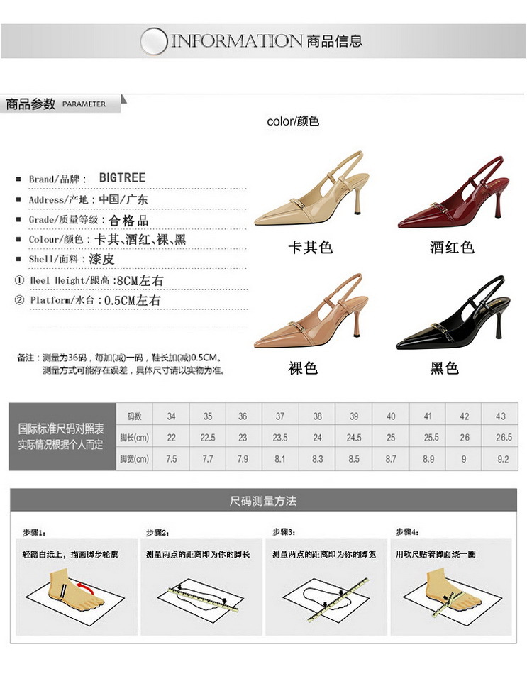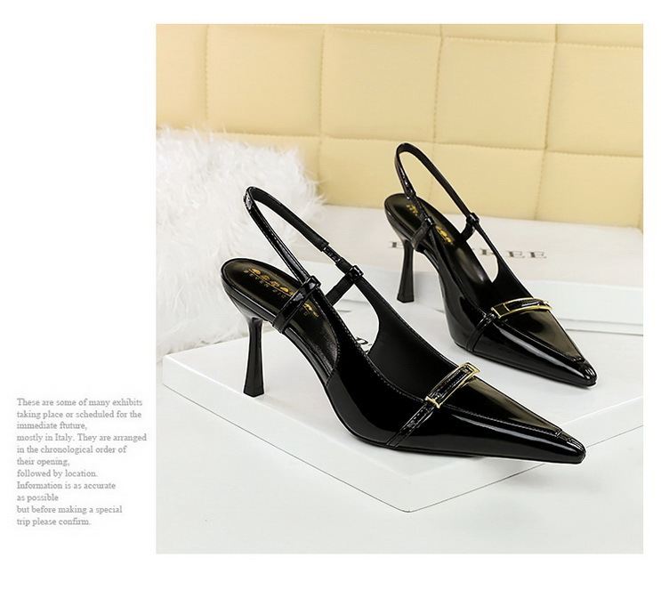 Đôi giày cao gót này mang phong cách châu Âu hiện đại, phù hợp cho các buổi tiệc hoặc sự kiện. Thiết kế có mũi nhọn, gót thanhai mảnh và phần thân làm từ chất liệu da bóng. Điểm nhấn là khóa kim loại trang trí ở phía trước, cùng phần phía sau được thiết kế hở gót có dây cố định. Sản phẩm dễ dàng mang vào và điều chỉnh độ ôm chân nhờ dây cài. Bạn có thể kết hợp với đầm dự tiệc hoặc quần tây để tạo điểm nhấn. | Tên sản phẩm: Giày Cao Gót Nữ Mũi Nhọn Gót Nhọn Phong Cách Âu Mỹ - Giày Dép Nữ | Mã sản phẩm: A9106 - Giá: 640.000đ | Mã nhà sản xuất: PITYIN-G02Hình ảnh sản phẩm