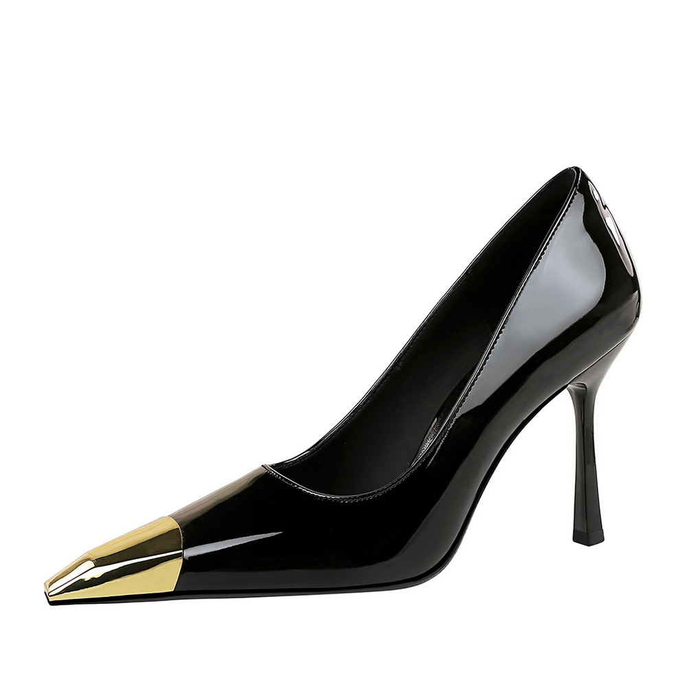 Đôi giày này có phần mũi nhọn bằng kim loại sáng bóng, tạo điểm nhấn nổi bật. Kiểu dáng phong cách Hàn Quốc với phần cổ thấp, ôm gọn bàn chân. Đế cao và thanh mảnh, giúp tôn dáng người sử dụng một cách tinh tế. Chất liệu bề mặt bóng mịn, dễ dàng vệ sinh. Bạn có thể mang đôi giày này để phối hợp với nhiều loại trang phục khác nhau trong các buổi tiệc hoặc sự kiện. | Tên sản phẩm: Giày Cao Gót Nữ Mũi Nhọn Gót Nhọn Phong Cách Hàn Quốc - Giày Dép Nữ | Mã sản phẩm: A9111 - Giá: 700.000đ | Mã nhà sản xuất: PITYIN-G02Hình ảnh sản phẩm