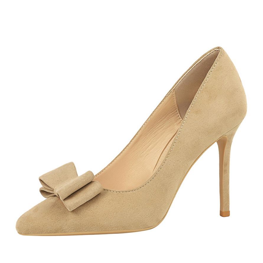 Đôi giày này có phần gót thanh mảnh và cổ giày thấp, tạo nên vẻ đẹp nữ tính. Mũi giày bo tròn êm ái, điểm nhấn là chiếc nơ nhỏ xinh phía trước. Chất liệu bề mặt được làm từ vải mềm mịn, mang lại cảm giác dễ chịu. Kiểu dáng phù hợp cho các buổi tiệc hay sự kiện. Bạn có thể phối cùng đầm hoặc chân váy để tôn lên nét duyên dáng. | Tên sản phẩm: Giày Cao Gót Nữ Thắt Nơ Bướm Mũi Tròn Gót Nhọn Phong Cách Âu Mỹ - Giày Dép Nữ | Mã sản phẩm: A9140 - Giá: 640.000đ | Mã nhà sản xuất: PITYIN-G02Hình ảnh sản phẩm