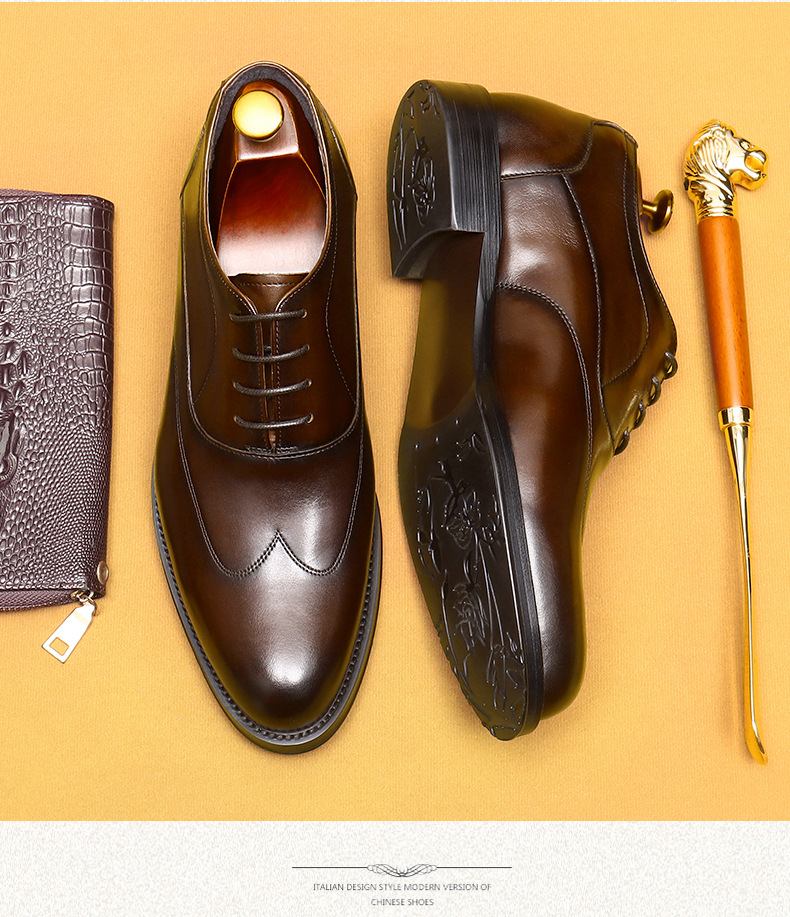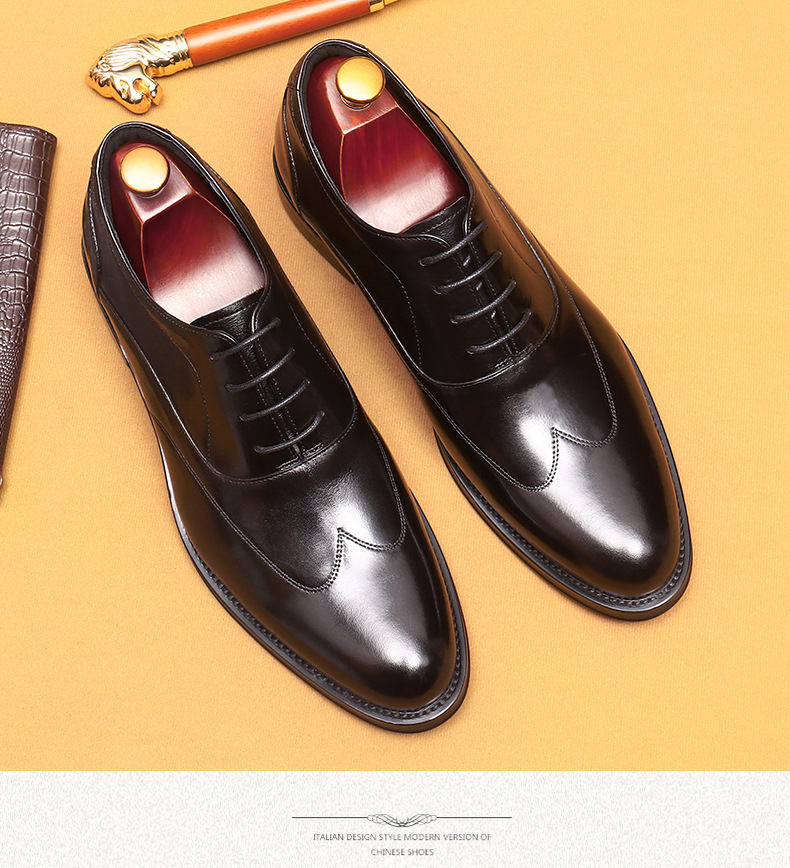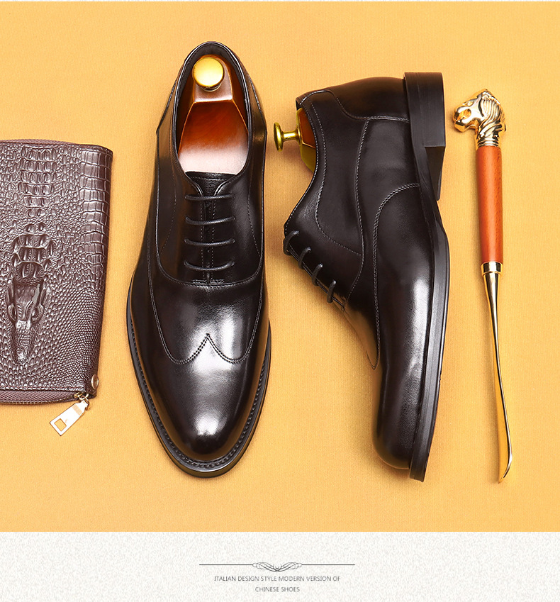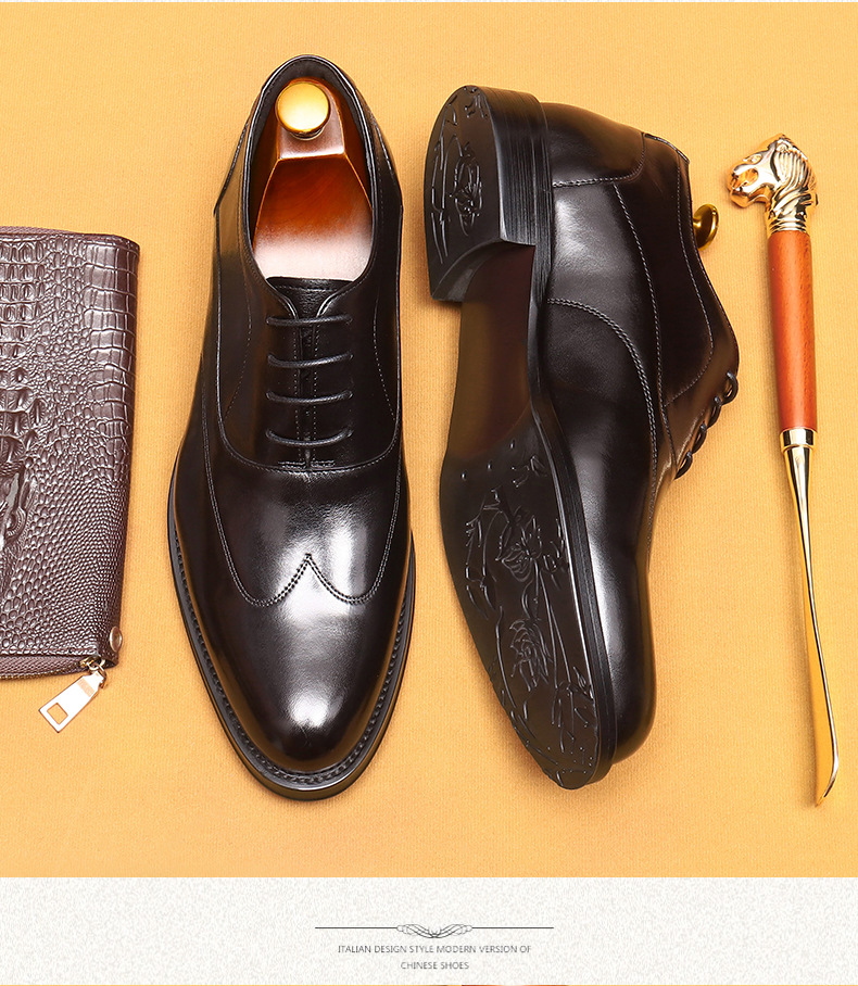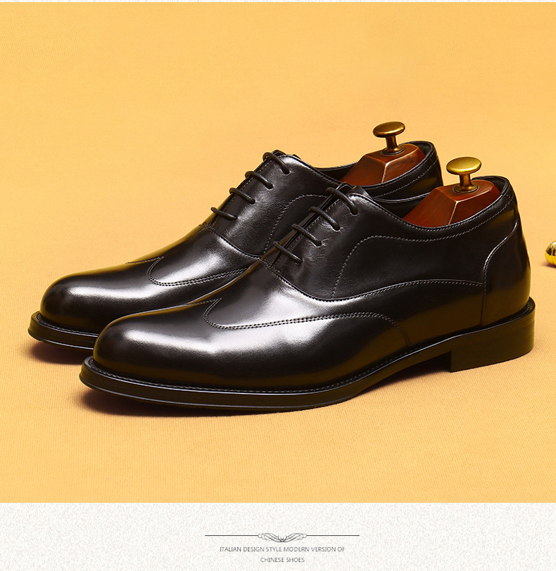 Giày tây da thật dành cho nam, phù hợp cho công sở hoặc những dịp quan trọng. Sản phẩm có thiết kế mũi nhọn lịch sự, đi kèm đế trong được thiết kế tăng thêm chiều cao một cách tự nhiên. Được làm từ chất liệu da bò mềm mại, bền đẹp theo thời gian. Mang giày kết hợp cùng trang phục như quần âu, áo sơ mi để tạo phong cách chỉn chu. | Tên sản phẩm: Giày Da Nam Chất Liệu Da Bò Mũi Nhọn Tăng Chiều Cao Dùng Trong Lễ Cưới Ngày Cưới - Giày Dép Nam | Mã sản phẩm: A9143 - Giá: 2.870.000đ | Mã nhà sản xuất: SHERAW-G06Hình ảnh sản phẩm