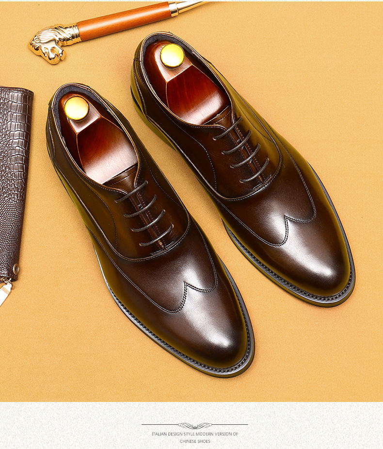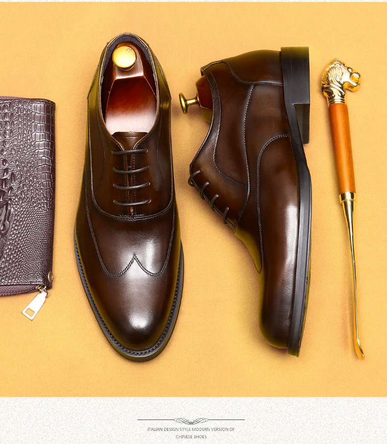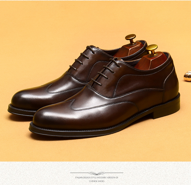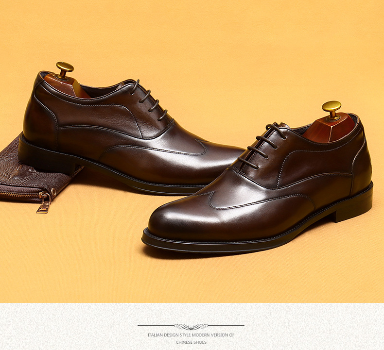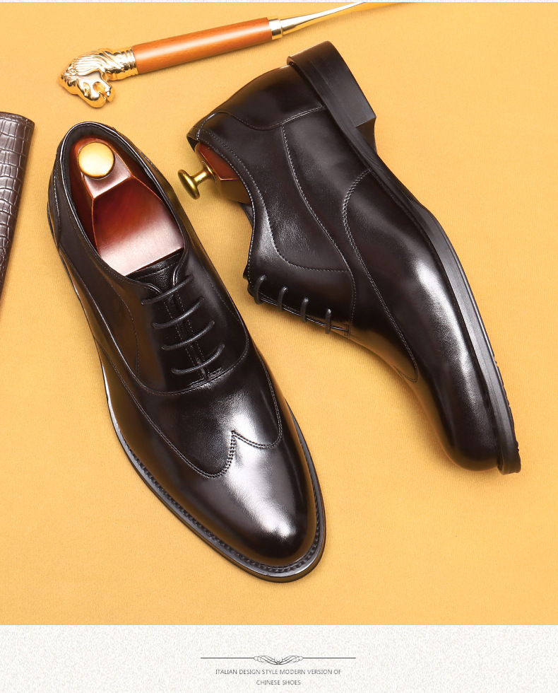 Giày tây da thật dành cho nam, phù hợp cho công sở hoặc những dịp quan trọng. Sản phẩm có thiết kế mũi nhọn lịch sự, đi kèm đế trong được thiết kế tăng thêm chiều cao một cách tự nhiên. Được làm từ chất liệu da bò mềm mại, bền đẹp theo thời gian. Mang giày kết hợp cùng trang phục như quần âu, áo sơ mi để tạo phong cách chỉn chu. | Tên sản phẩm: Giày Da Nam Chất Liệu Da Bò Mũi Nhọn Tăng Chiều Cao Dùng Trong Lễ Cưới Ngày Cưới - Giày Dép Nam | Mã sản phẩm: A9143 - Giá: 2.870.000đ | Mã nhà sản xuất: SHERAW-G06Hình ảnh sản phẩm