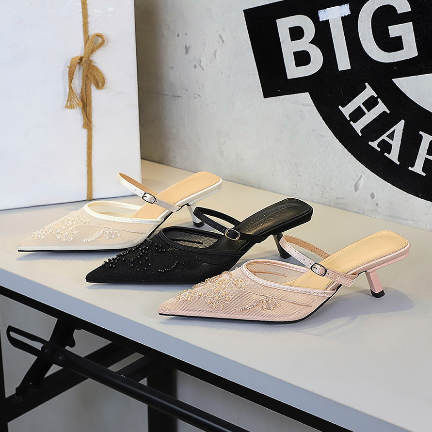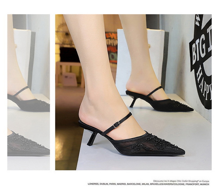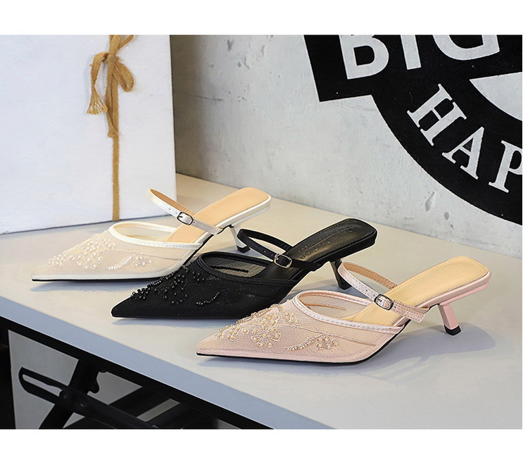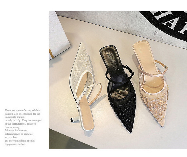 Đôi dép nữ mang phong cách châu Âu hiện đại với thiết kế mũi nhọn và gót nhọn thanh lịch. Sản phẩm có phần thân làm từ chất liệu ren và vải mỏng, được điểm xuyết bằng họa tiết thêu hoa tinh xảo tạo nên vẻ đẹp quyến rũ. Dáng dép hở gót với quai ngang dễ dàng mang vào và cởi ra. Bạn có thể sử dụng làm dép đi trong nhà hoặc phối cùng trang phục đi chơi. | Tên sản phẩm: Giày Dép Lê Nữ Chất Liệu Ren Mũi Nhọn Gót Nhọn Thêu Họa Tiết Hoa Phong Cách Âu Mỹ - Giày Dép Nữ | Mã sản phẩm: A9148 - Giá: 640.000đ | Mã nhà sản xuất: PITYIN-G02Hình ảnh sản phẩm