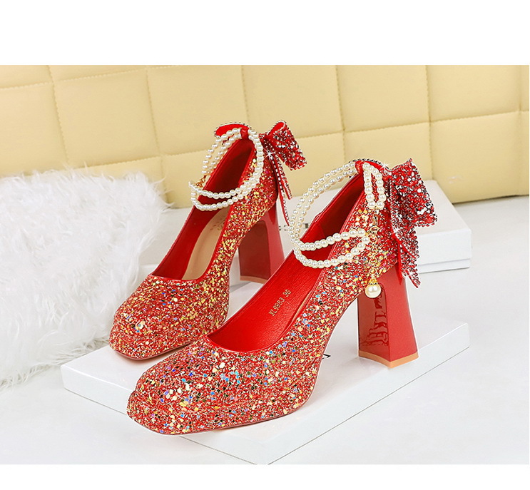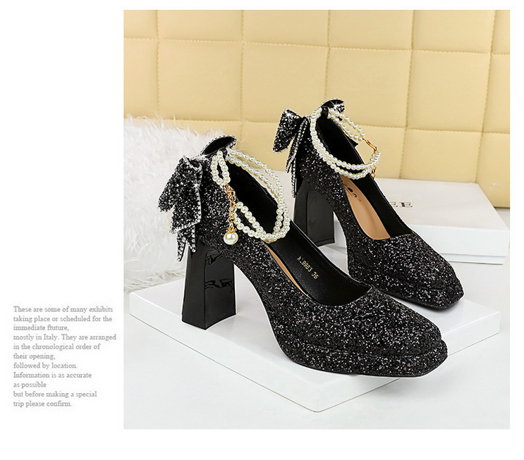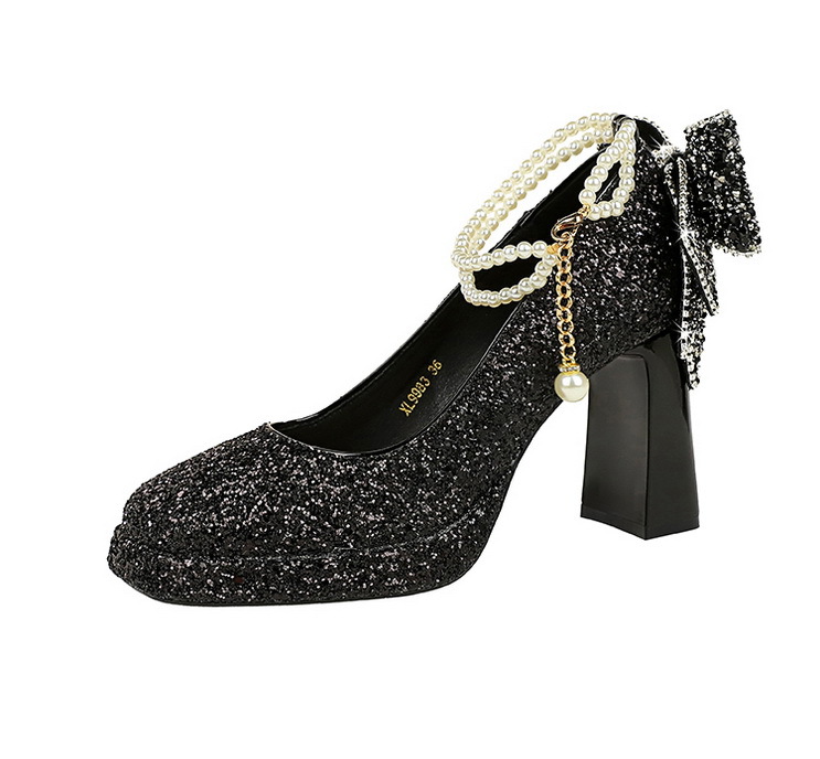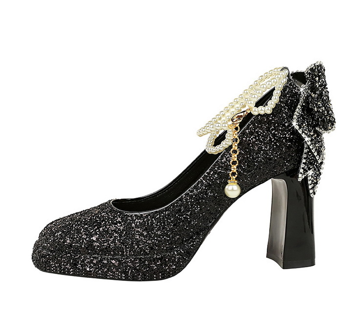 Đôi giày này có phần mũi vuông thanh lịch, kết hợp cùng đế khá chắc chắn giúp nâng đỡ bàn chân một cách thoải mái. Dây đeo ngang mảnh được điểm xuyến bằng hạt ngọc tr và nơ kim tuyến lấp lánh, tạo điểm nhấn dịu dàng. Sản phẩm thích hợp để mang trong nhiều dịp khác nhau. Bạn chỉ cần xỏ chân vào, kéo khóa nhẹ nhàng và điều chỉnh dây đeo cho vừa vặn là đã sẵn sàng. | Tên sản phẩm: Giày Cao Gót Nữ Thắt Nơ Bướm Gắn Đá Gót Vuông - Giày Dép Nữ | Mã sản phẩm: A9169 - Giá: 840.000đ | Mã nhà sản xuất: PITYIN-G03Hình ảnh sản phẩm