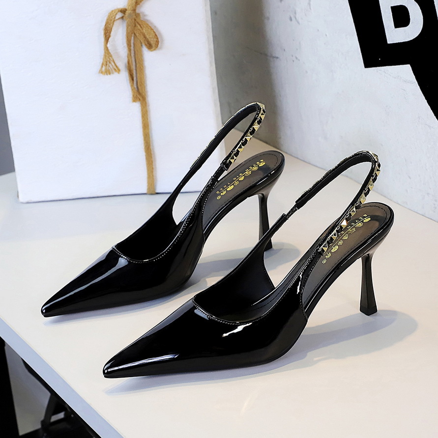 Đôi giày này có kiểu dáng mũi nhọn và gót thon, tôn lên vẻ thanh lịch cho người mang. Phần qu hậu được thiết kế với điểm nhấn là các đinh tán cá tính, giúp giữ chân chắc chắn. Đây là mẫu giày bắt mắt, phù hợp để đi làm hoặc dùng trong nhiều dịp khác nhau. Cách dùng rất đơn giản, chỉ cần luồn chân vào và cài qu sau là đã sẵn sàng. | Tên sản phẩm: Giày Cao Gót Nữ Mũi Nhọn Gót Nhọn Phong Cách Âu Mỹ - Giày Dép Nữ | Mã sản phẩm: A9174 - Giá: 700.000đ | Mã nhà sản xuất: PITYIN-G02Hình ảnh sản phẩm