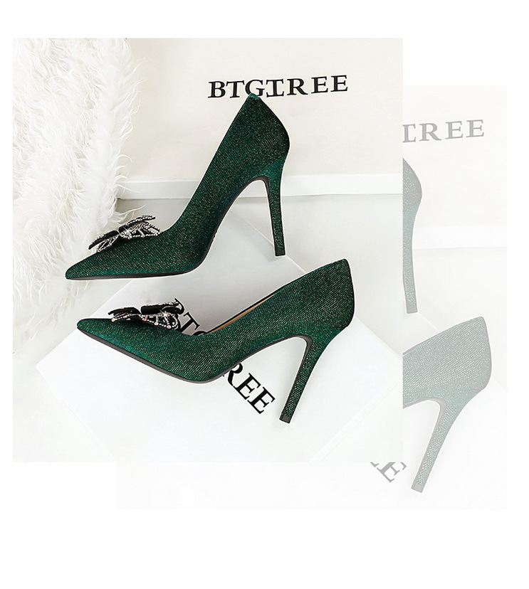 Đôi giày này có kiểu dáng châu Âu hiện đại, điểm nhấn là nơ gắn đá lấp lánh ở mu bàn chân. Chất liệu bằng vải mềm mịn, ôm chân thoải mái. Phần gót được thiết kế thanhai mảnh và cao, giúp tôn dáng đôi chân một cách tự nhiên. Bạn có thể dễ dàng phối cùng nhiều loại trang phục như quần âu, váy liền để đi làm hoặc dự tiệc. | Tên sản phẩm: Giày Cao Gót Nữ Thắt Nơ Bướm Gắn Đá Gót Nhọn Phong Cách Âu Mỹ - Giày Dép Nữ | Mã sản phẩm: A9180 - Giá: 710.000đ | Mã nhà sản xuất: PITYIN-G02Hình ảnh sản phẩm