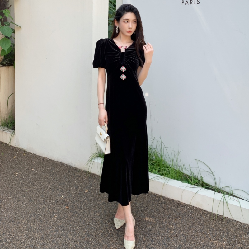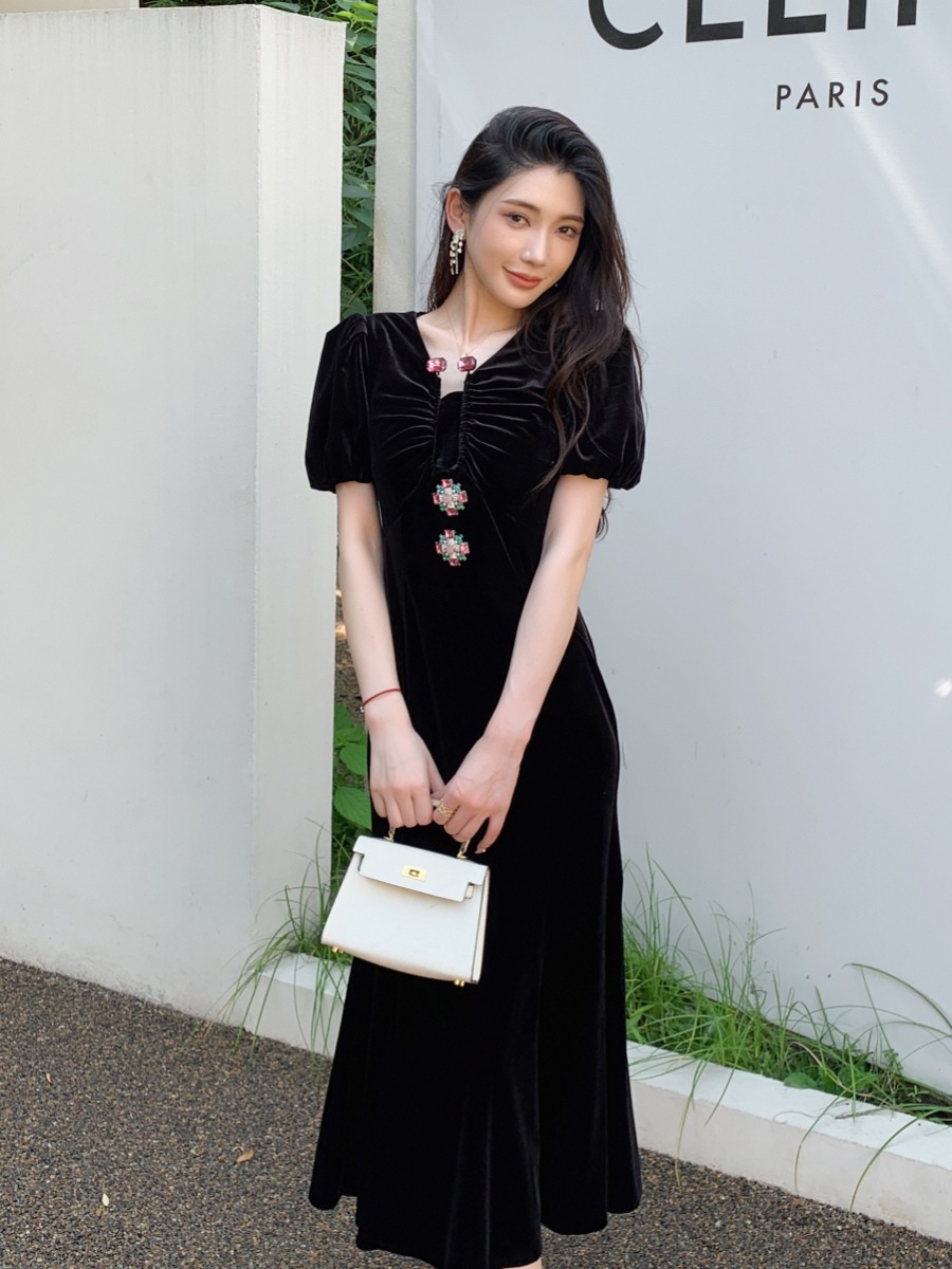 Chiếc đầm dáng dài cho các dịp dạo phố hoặc dự tiệc. Chất vải mềm mại, có độ co giãn và ánh lụa nhẹ tạo cảm giác dễ chịu. Thiết kế ôm tôn dáng với phần eo cao, xòe nhẹ ở vạt dưới tựa như đuôi cá, giúp người mặc thêm phần nổi bật. Màu đen dễ dàng phối hợp với nhiều loại phụ kiện. Có thể mặc cùng giày cao gót và túi xách nhỏ cho buổi tối. | Tên sản phẩm: Váy Đầm Liền Thân Nữ Dáng Ôm Kiểu Đuôi Cá Hàng Mùa Xuân Thu Đông - Thời Trang Nữ | Mã sản phẩm: a9197 - Giá: 2.120.000đ | Mã nhà sản xuất: HADN-G05Hình ảnh sản phẩm