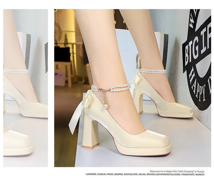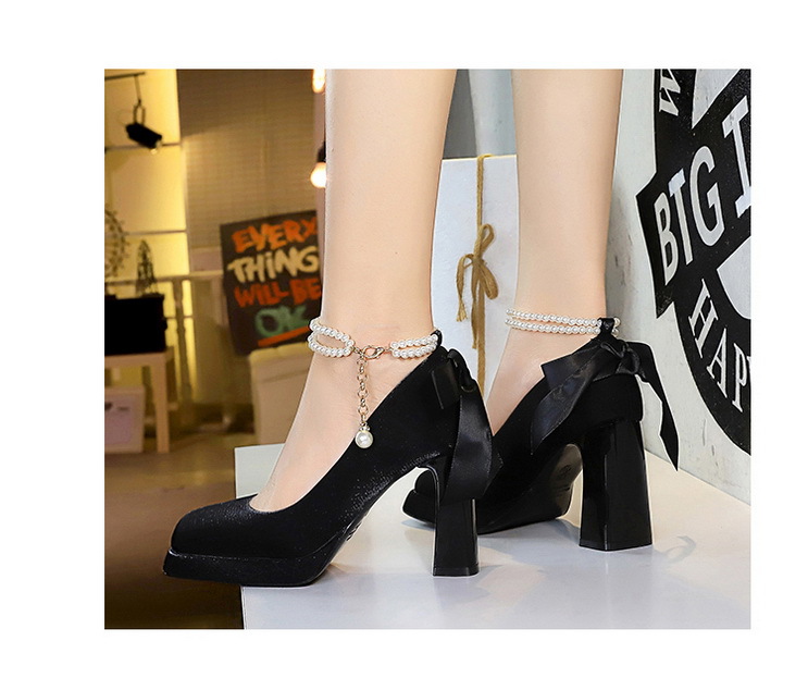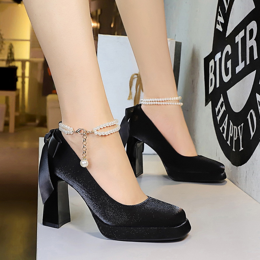 Đôi giày này có phần mũi vuông và đế thấp vững chắc, đi kèm đế chống nước giúp tăng thêm chiều cao một cách thoải mái. Dây ngang cổ chân được điểm xuyến bằng hạt ngọc tr tinh xảo, trong khi nơ trang trí ở gót chân làm từ chất liệu vải mềm mại, tạo điểm nhấn duyên dáng. Kiểu dáng theo xu hướng hiện đại, phù hợp để diện trong nhiều dịp. Chỉ cần xỏ chân vào, cài qu và thắt nơ là bạn đã có một set đồ hoàn chỉnh. | Tên sản phẩm: Giày Cao Gót Nữ Thắt Nơ Bướm Gót Vuông Phong Cách Hàn Quốc - Giày Dép Nữ | Mã sản phẩm: A9207 - Giá: 750.000đ | Mã nhà sản xuất: PITYIN-G02Hình ảnh sản phẩm