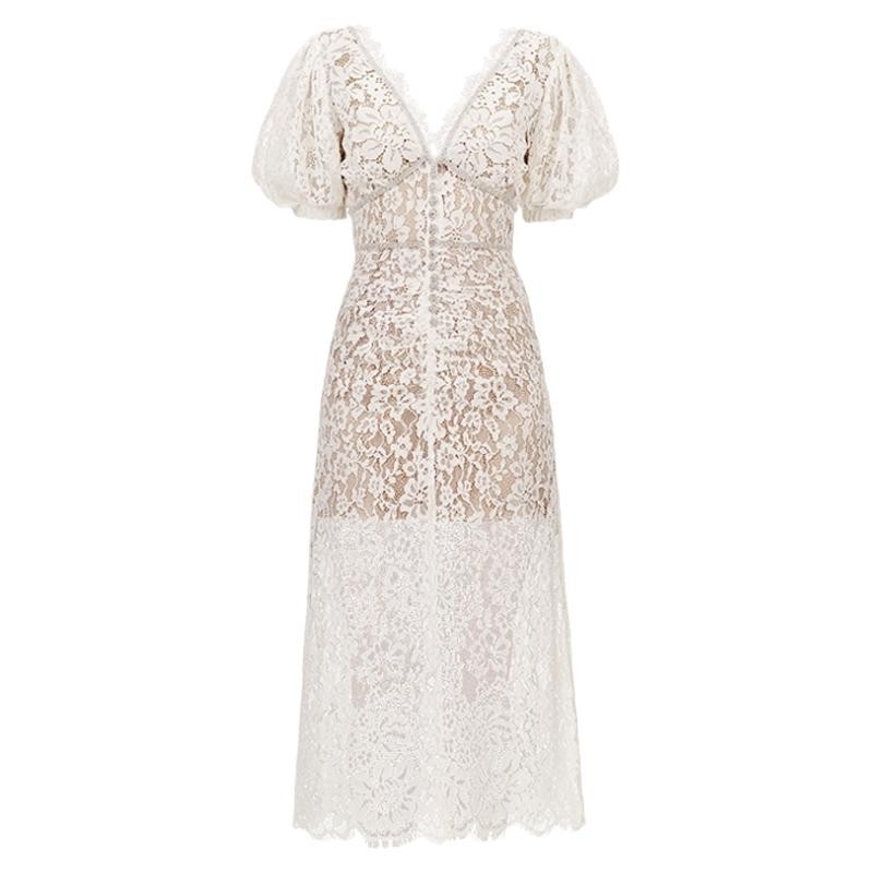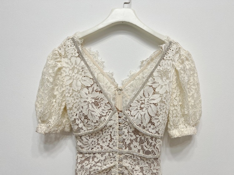 Chiếc đầm dáng dài qua gối với form dáng ôm nhẹ, điểm nhấn là cổ khoét chữ V tôn dáng. Chất vải ren mềm mại kết hợp cùng những đường đính hạt lấp lánh tạo nên vẻ đẹp tinh tế. Sản phẩm có màu trắng ngà dễ phối đồ, thích hợp cho các buổi tiệc hoặc sự kiện. Cách giặt tay nhẹ nhàng sẽ giúp bảo quản chất vải và chi tiết trang trí được bền đẹp theo thời gian. | Tên sản phẩm: Váy Đầm Liền Thân Dáng Dài Nữ Chất Liệu Ren - Thời Trang Nữ | Mã sản phẩm: a9216 - Giá: 1.920.000đ | Mã nhà sản xuất: HADN-G05Hình ảnh sản phẩm